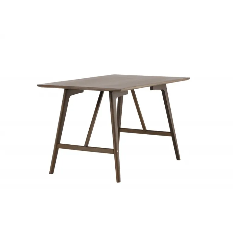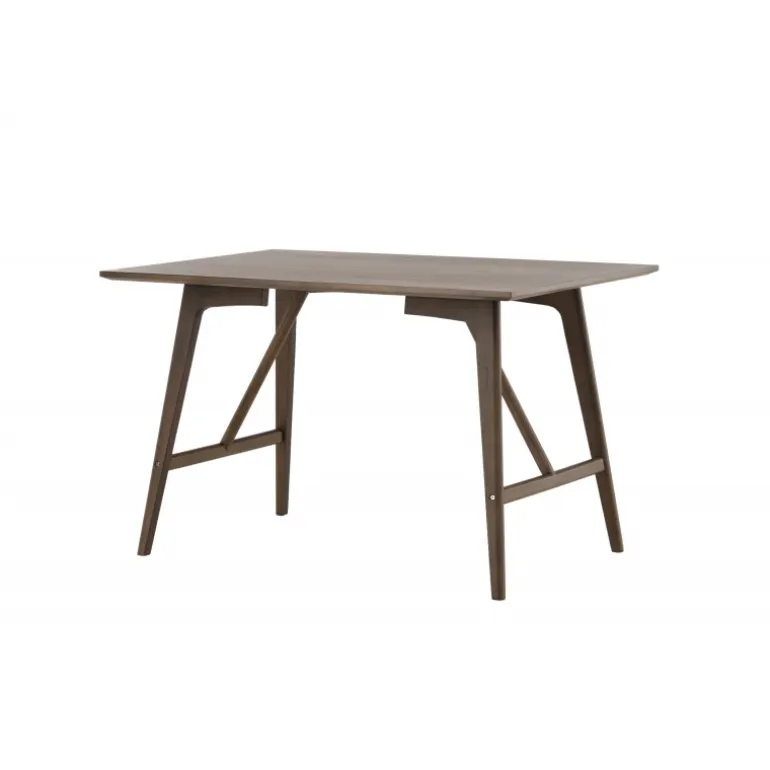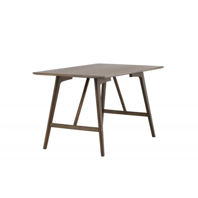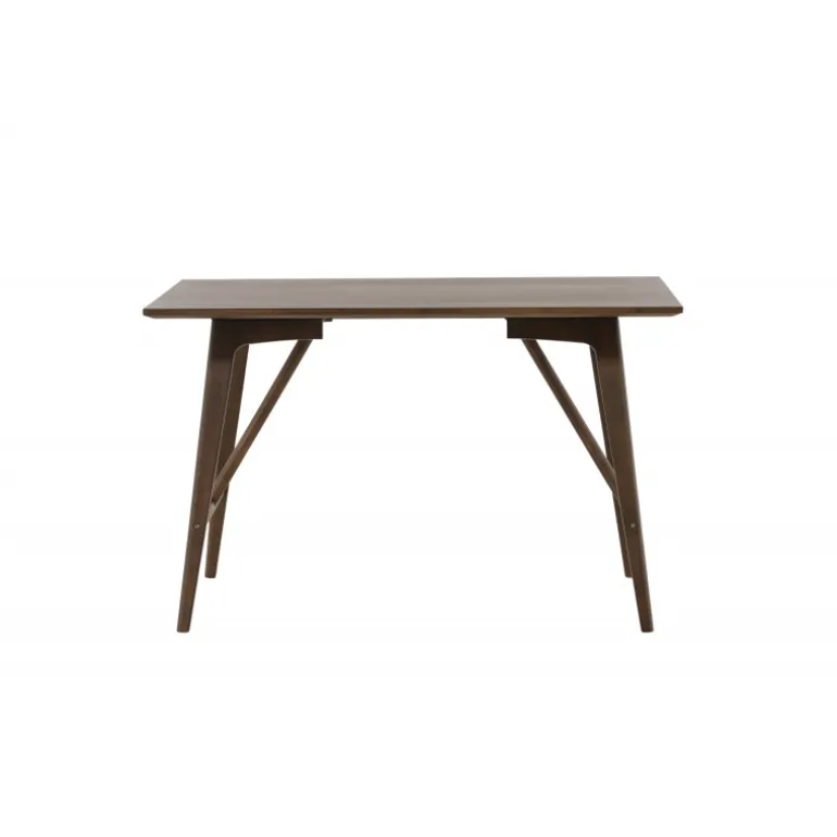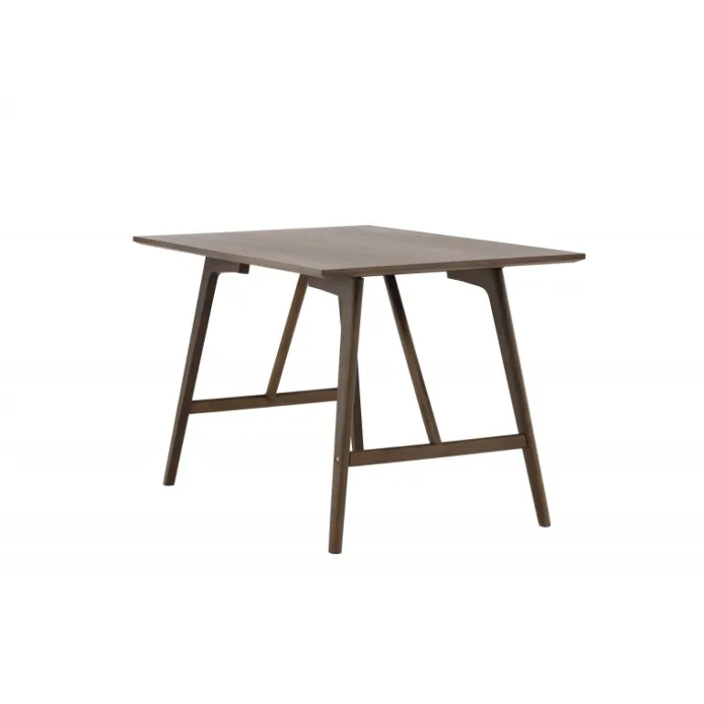 Kaseindon Spisebord har en moderne valnøddefarvet farve, der passer perfekt til det moderne hjem. Den rektangulære bordplade har en mat finish, og benene er let skrånende med en stabiliserende ramme, lavet af MDF og gummitræ. Match med et par komfortable spisebordsstole, og du har en komplet Spisebordssæt til dit hjem!
