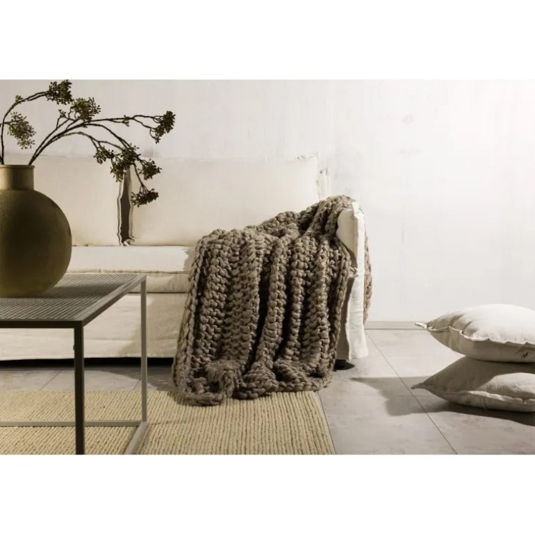Forkæl dig selv med den dejlige Kate plaid med store strikkede masker i polyesterfiber og skab en uundgåeligt hyggelig stemning i stuen eller soveværelset! Plaiden er blød og glat mod kroppen uden strikning, og med sine store masker bliver den noget helt specielt og iøjnefaldende til din indretning, mens den holder dig varm. For at bevare dine tekstilers levetid anbefaler vi at lufte dem ofte og fjerne eventuelle pletter med pletfjerner. Dimensioner: 130×170 cm.