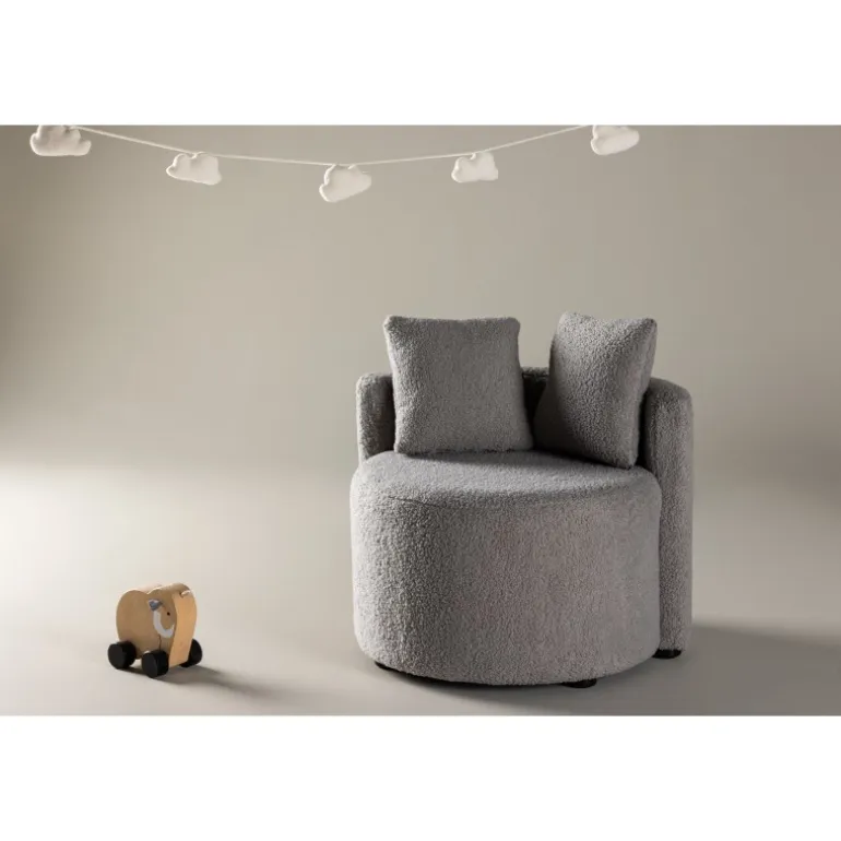 Udforsk Kelso – den perfekte 2 personers sofa til børn, der kombinerer komfort og charme i et gråt teddy-design. Kelso er FSC® certificeret (FSC®C177288), hvilket betyder, at den består af træ fra ansvarligt forvaltede skove, der tager hensyn til både mennesker og miljø. Med sin bløde og hyggelige overflade bliver Kelso hurtigt en favoritplads for dine små, hvor de kan slappe af og drømme sig væk. Kelso leveres med to små puder for ekstra komfort og støtte. Disse søde små detaljer tilføjer et strejf af leg til børneværelset og gør Kelso til en øjeblikkelig favorit blandt de små. Det hvide teddy-design giver Kelso en sød og krammelig karakter, hvilket gør den til det perfekte møbel til børneværelset. Uanset om den bruges til at læse eventyr, se film eller bare hygge sig, bliver Kelso et elsket sted for børnenes små eventyr. Giv dine børn et hyggeligt og blødt sted at slappe af med Kelso 2 personers sofa. Med sit charmerende design og komfortable materialer bliver Kelso en uundgåelig del af børneværelsets indretning, der skaber en følelse af varme og tryghed.