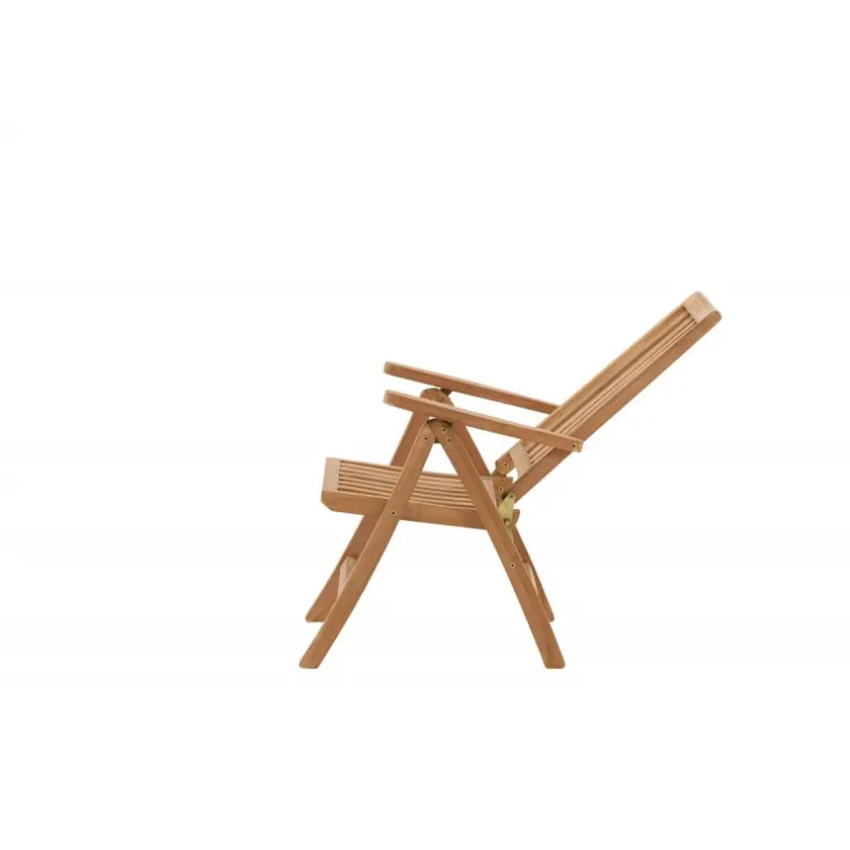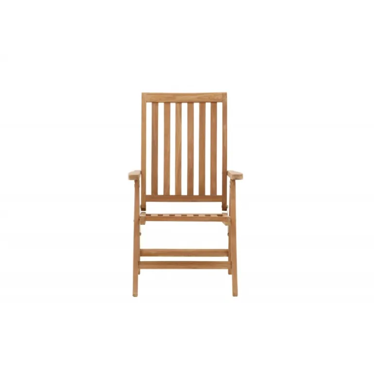 Lækker, moderne og holdbar – en drømmestol til terrassen simpelthen! Kenya er en foldbar spisebordsstol i smuk teak. Stolens ryglæn kan justeres i 5 forskellige positioner for at give dig maksimal bekvemmelighed. Så læn dig tilbage og nyd fridagene denne sommer. Plejeråd: Vores teakmøbler er produceret af certificeret teak, der er dyrket til formålet og ikke ødelagt fra sårbare regnskove. Som en af de mest holdbare træsorter indeholder teak meget olie, der normalt er nødvendig for at materialet ikke sprækker. Fordi træsorten naturligt indeholder meget, behøver møblerne ikke at blive imprægneret så ofte.