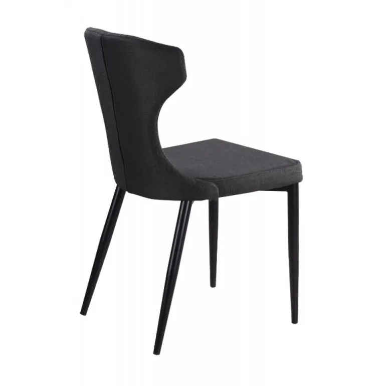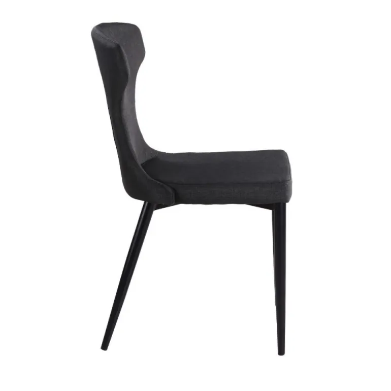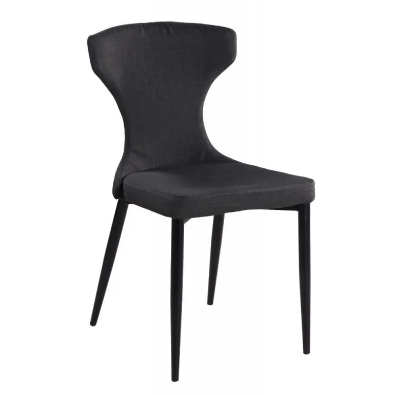 Moderne og komfortabel spisebordsstol udført i sort stof. Stolen hviler på fire runde ben i sort metal, der fuldender stolens look. Et lækkert design der med sit moderne formsprog passer ind i det smarte og stilfulde hjem.