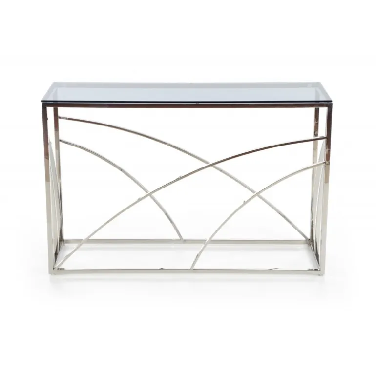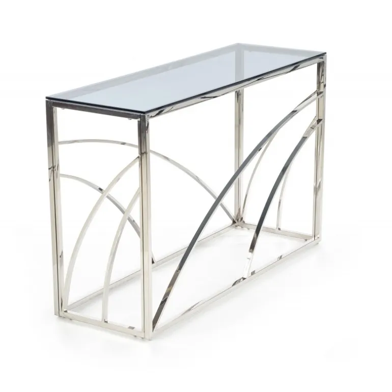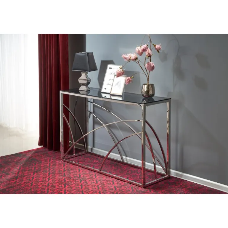 Oplev det stilfulde og moderne KN5 konsolbord, designet til at tilføje et strejf af elegance til dit kontor eller hjem. Med dimensioner på 120/40/78 cm passer det perfekt til både små og store rum. Bordet er fremstillet af glas og kromstål, hvilket sikrer både holdbarhed og et luksuriøst udseende. Den røgfarvede glasoverflade kombineret med sølvfarvet stel giver et sofistikeret look, der komplementerer enhver indretning.