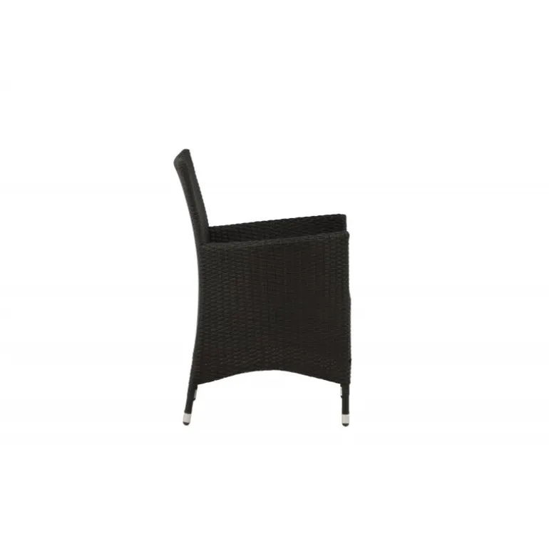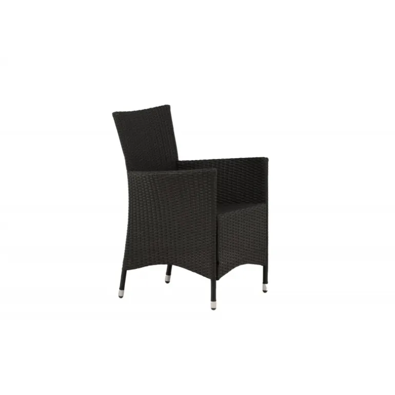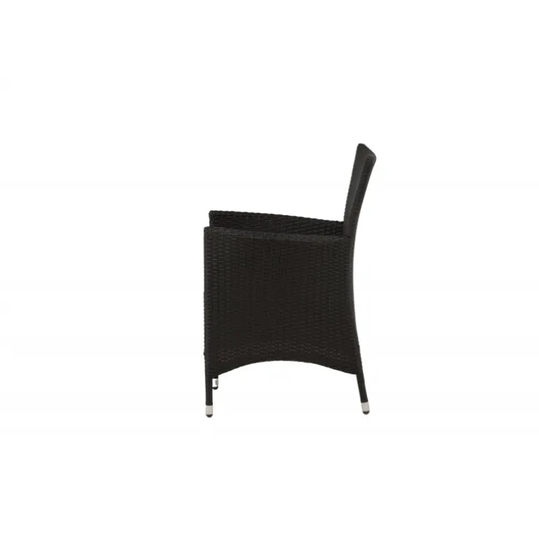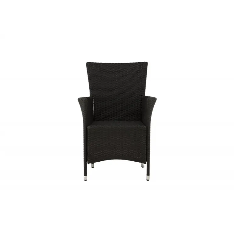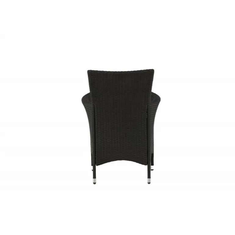 Sid behageligt denne sommer i vores trend-sikre stole fra Knick-serien! En klassisk armstol i sort kunstig rattan – let at matche og tidløs farve. Her får du virkelig en robust stol, hvor du kan sidde komfortabelt i flere timer. Forlæng middagsinvitationerne og nyd varme aftener med venner i en hyggelig Loungesæt – Havemøbelsæt. Suppler stolen med et af vores stilfulde spiseborde til udendørs brug. Stolen er stabelbar. Plejeråd: Konstrite er et plastmateriale, der er perfekt til vores skandinaviske klima. Materialet er UV-resistent og kan modstå vejr og vind. At det er UV-resistent betyder, at møblerne ikke falmer, men vi anbefaler altid at opbevare møblerne under møbelbeskyttelse eller andet tørt og køligt for at forlænge levetiden.