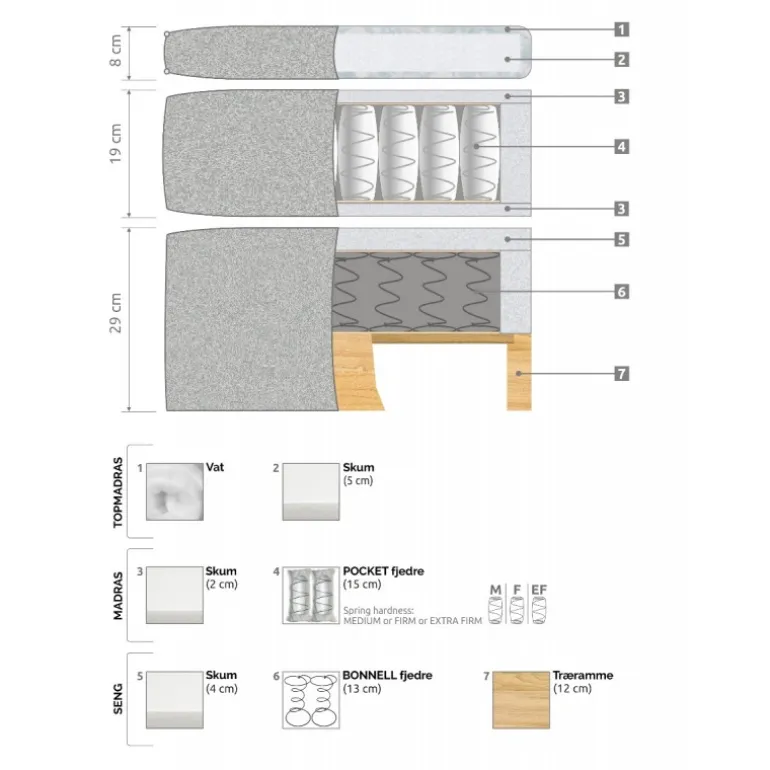 Sengehøjde uden ben – 57 cm.