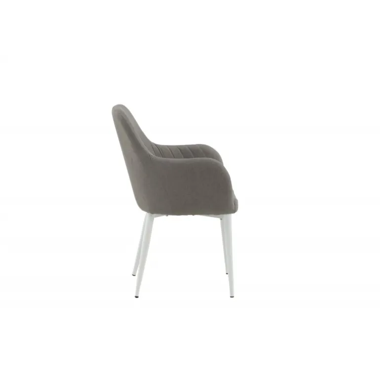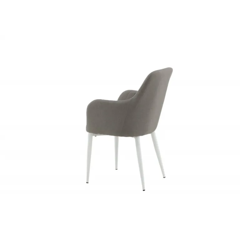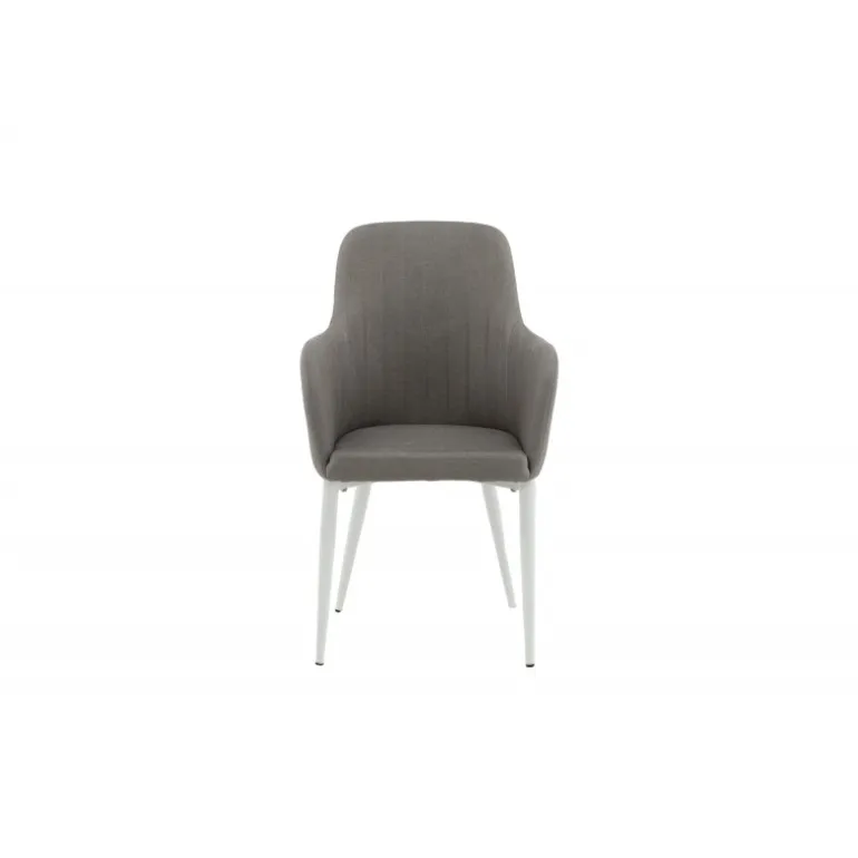 Sid komfortabelt og forbedr den behagelige atmosfære omkring spisebordet med en afslappende spisebordsstol fra Komfort-serien! Den har et robust fuldt beklædt design med ben i hvid pulverlakeret metal og ryg og sæde med integrerede armlæn i gråt polyester stof med behagelig siddekomfort. Dekorative syninger på indersiden af ryg og armlæn bliver en stilfuld detalje. Lettere samling kræves. Plejeråd: Brug tekstilspray til at imprægnere tekstilet, før du begynder at bruge det, det vil også gøre eventuelt snavs og pletter lettere at fjerne i fremtiden. Fjern pletter med det samme, gnid ikke, men forsøg at suge forsigtigt op med en klud.