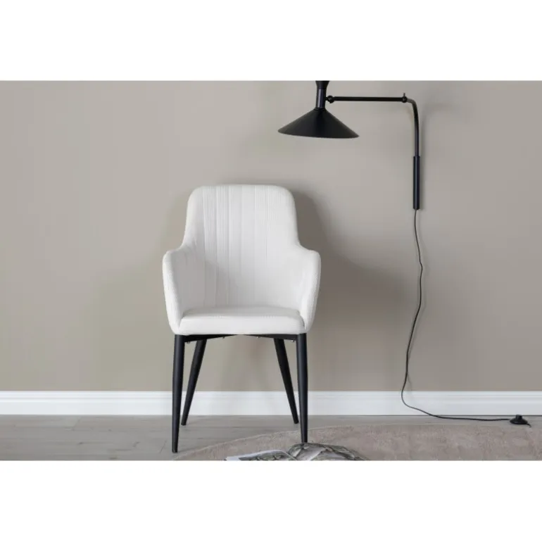 Lad moderne design møde 50’ernes nostalgi med denne trendy Manchester-stol fra Komfort-serien! Polstret i blødt, let fløjlstof, der skaber en dejlig glans og et moderne look til hjemmets hjerte. Benene er i sort pulverlakeret metal, og sædet med integrerede armlæn i beige Manchester-stof giver en behagelig siddekomfort. Dekorative sømme på indersiden af ryglænet og armlænene bliver en stilfuld detalje.