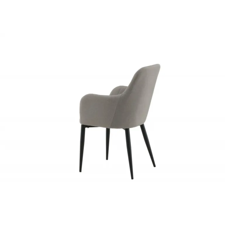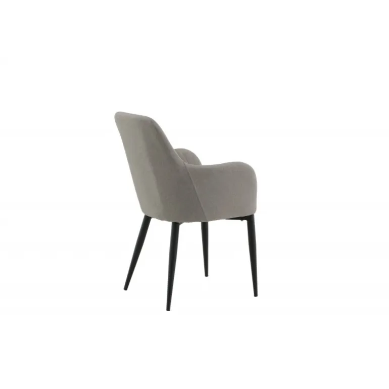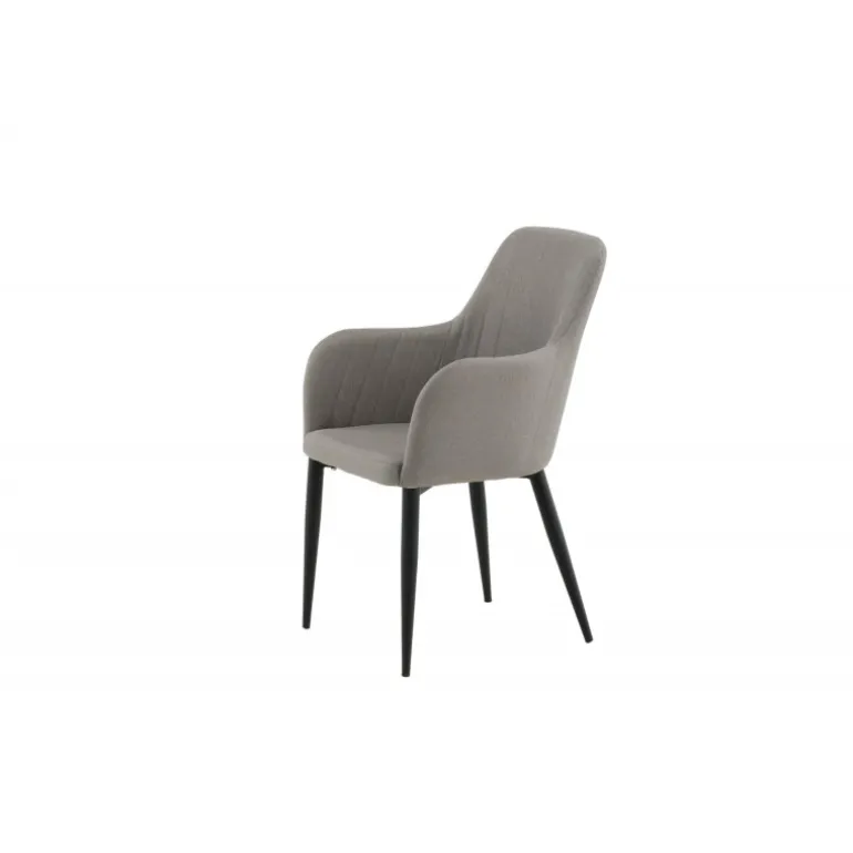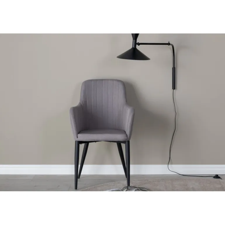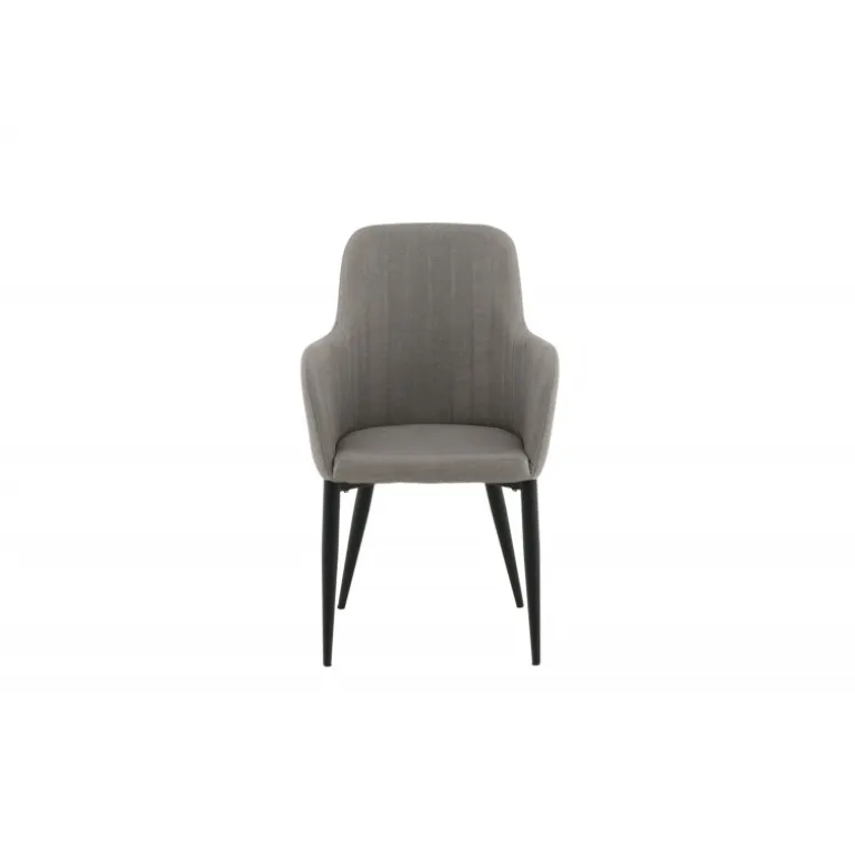 Sidd komfortabelt i spisestuestole fra Komfort-serien! En robust stol med et fuldt beklædt design og ben i sort pulverlakeret metal. Ryg og sæde med integrerede armlæn i grå polyesterstof giver god siddekomfort og en behagelig sædedybde. Dekorative stikninger på indersiden af ryggen og armlænene giver en flot detalje. Let montering kræves. Plejeråd: Fjern pletter med det samme, gnid ikke, men forsøg forsigtigt at suge op med en klud. Hvis pletterne ikke forsvinder, prøv med en pletfjerner, som først testes på en mindre synlig del af stoffet. Vi anbefaler, at større møbler skummes mindst tre gange om året.