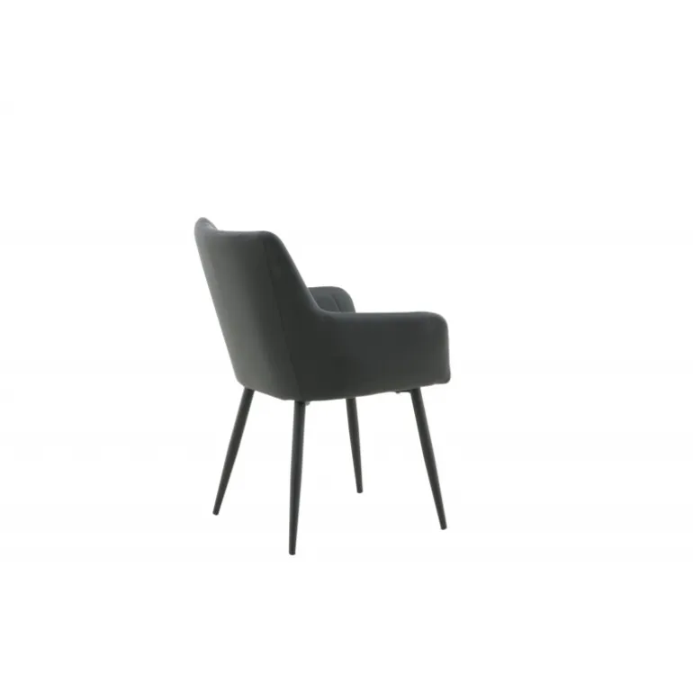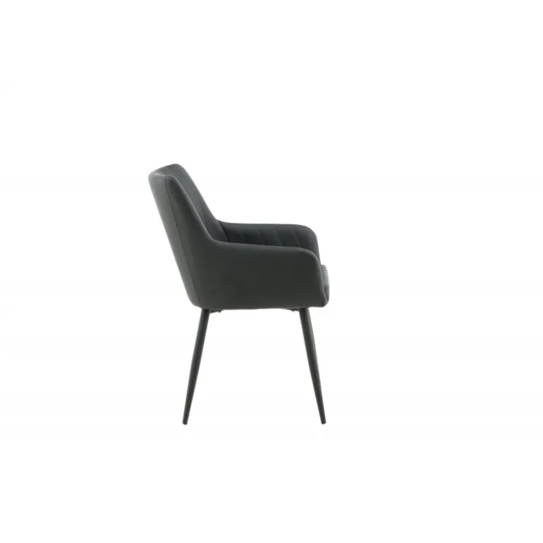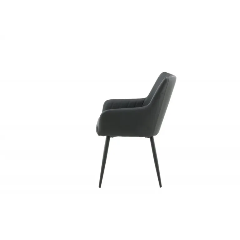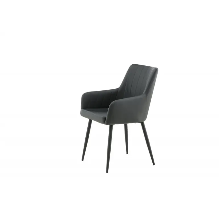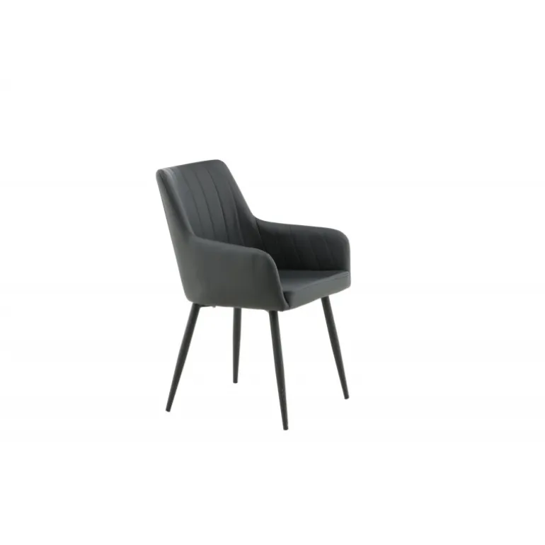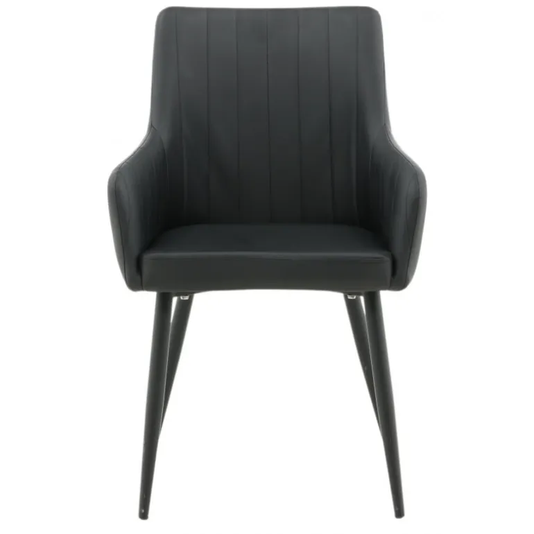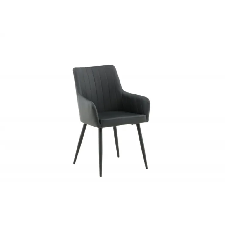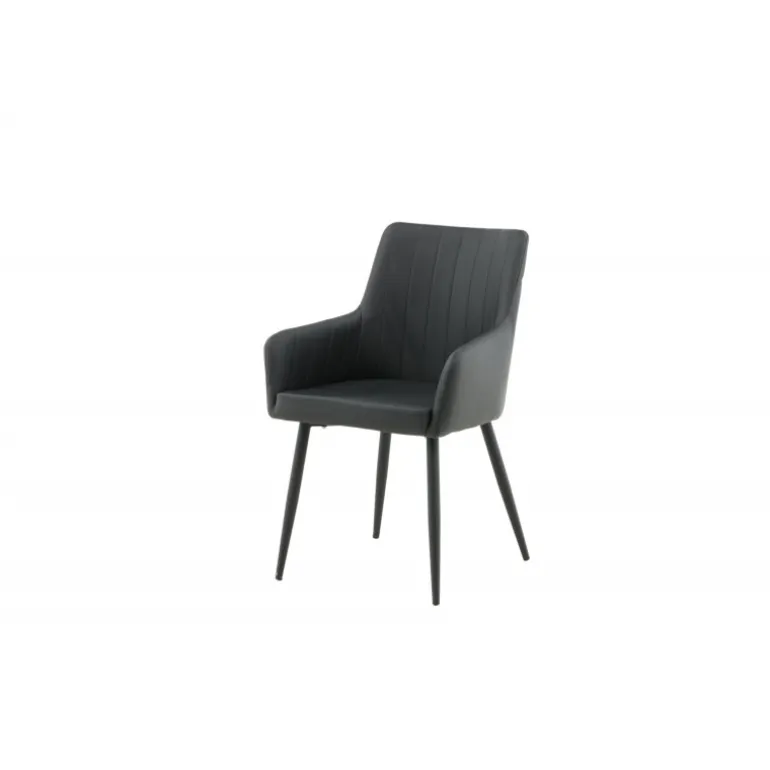 Komfort Stol fra serien Komfort er en elegant spisebordsstol i et robust og fuldt beklædt design med ben i sort pulverlakeret metal. Ryglæn og sæde med integrerede armlæn er udført i sort kunstlæder, hvilket sikrer en behagelig siddekomfort. Dekorative syninger på indersiden af ryglæn og armlæn giver en stilfuld detalje. Sid bekvemt og inviter til hyggelige måltider fremover! Lettere montering kræves. Plejeråd: Ved svære pletter, brug en fugtig bomuldsklud og et middel beregnet til rengøring af bycast & PU. Test først på et ikke synligt område, da nogle midler kan have forskellige sammensætninger. Tør af og polér med en blød bomuldsklud for at genskabe møblets højglans overflade.