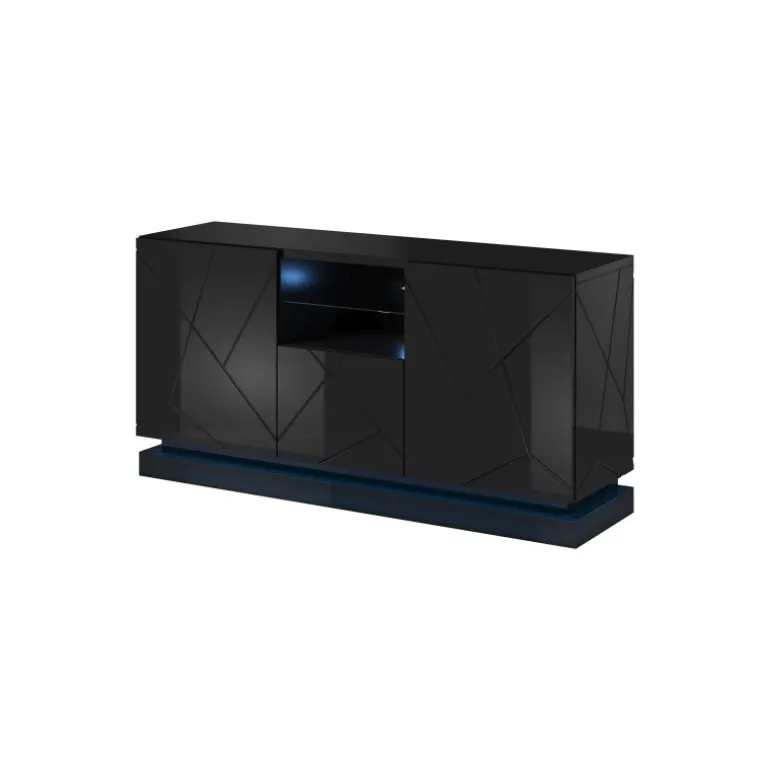 Giv dit hjem et elegant og moderne look med kommode QIU 2D1K i højglans Sort. Denne kommode er designet med højglans lamineret MDF-plader på både sider og fronter, hvilket giver et sofistikeret udseende. Med en højde på 75 cm, en bredde på 150 cm og en dybde på 41,5 cm tilbyder denne kommode rigelig opbevaringsplads. De synlige fræseværk på fronter og sider tilføjer en stilfuld detalje. Kommoden står på en solid sokkel, og de udtrækkende fronter fungerer som håndtag for et strømlinet design. Lys i Blå eller RGB farver kan bestilles separat, hvilket gør det muligt at tilpasse belysningen efter din stil.