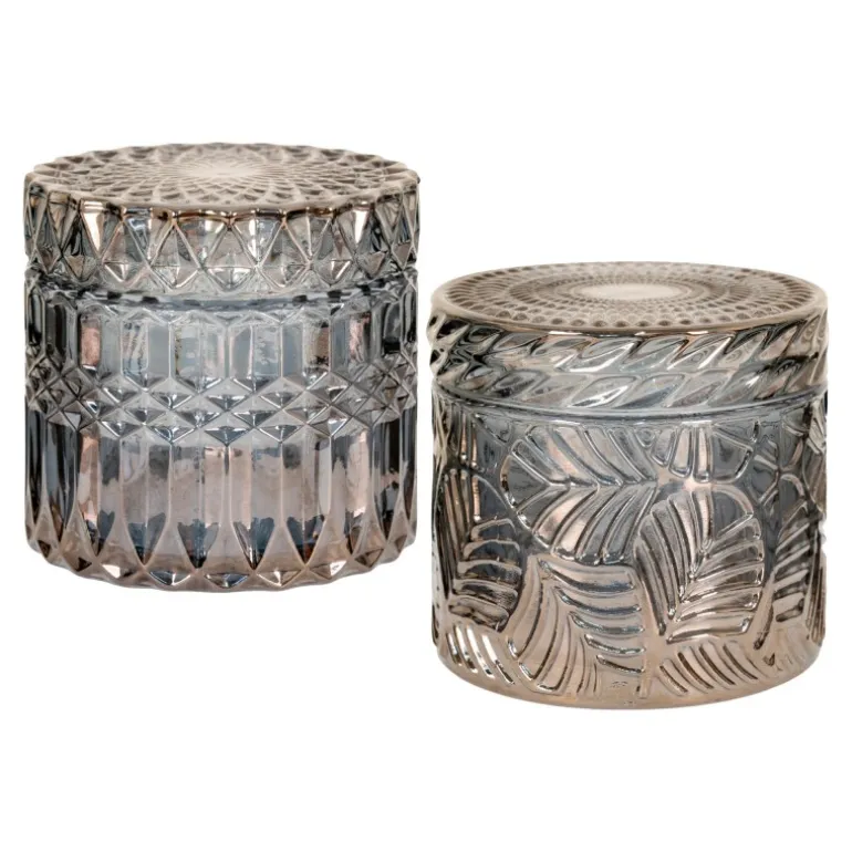 Sæt med 2 krukker i røget glas. Glas