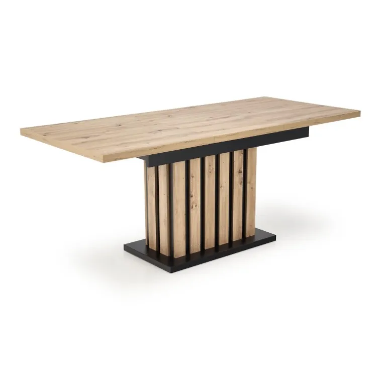 LAMELLO Spisebord med udtræket i håndværker eg og Sort er den perfekte løsning til både små og store sammenkomster. Med en justerbar længde fra 160 cm til 210 cm, er dette bord ideelt til både daglig brug og specielle lejligheder. Bordpladen er lavet af lamineret spånplade i en smuk håndværker eg finish, mens benene kombinerer håndværker eg og Sort for et stilfuldt og moderne udseende. Perfekt til ethvert hjem, der ønsker både funktionalitet og æstetik.