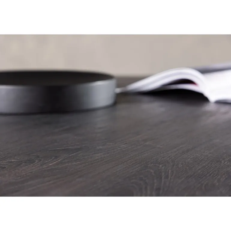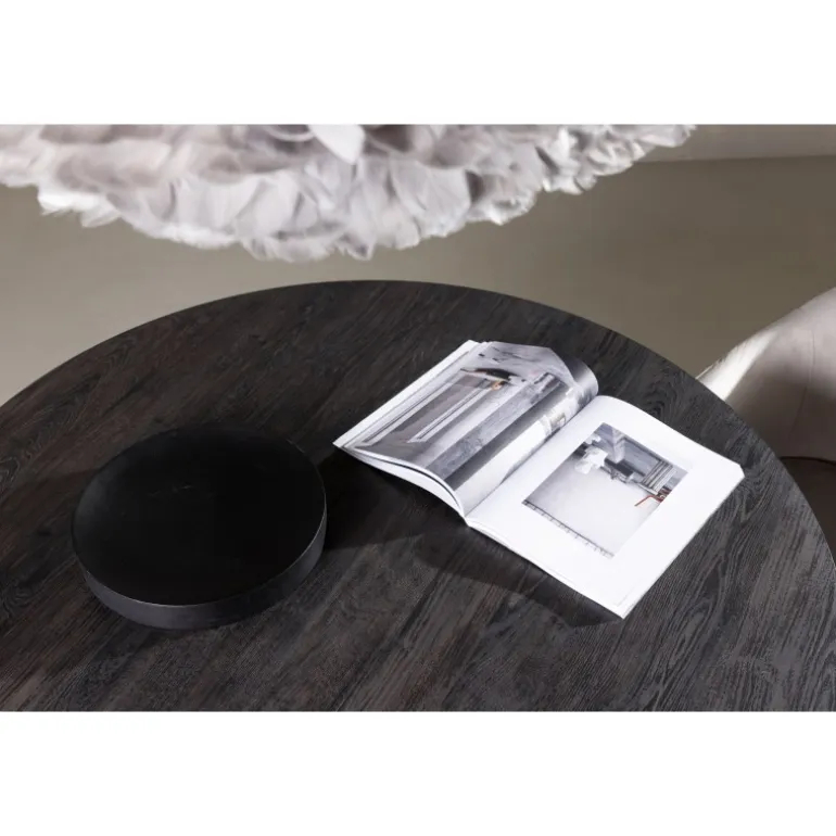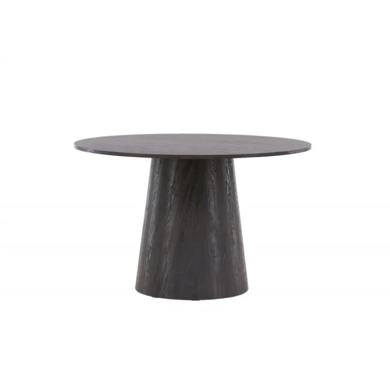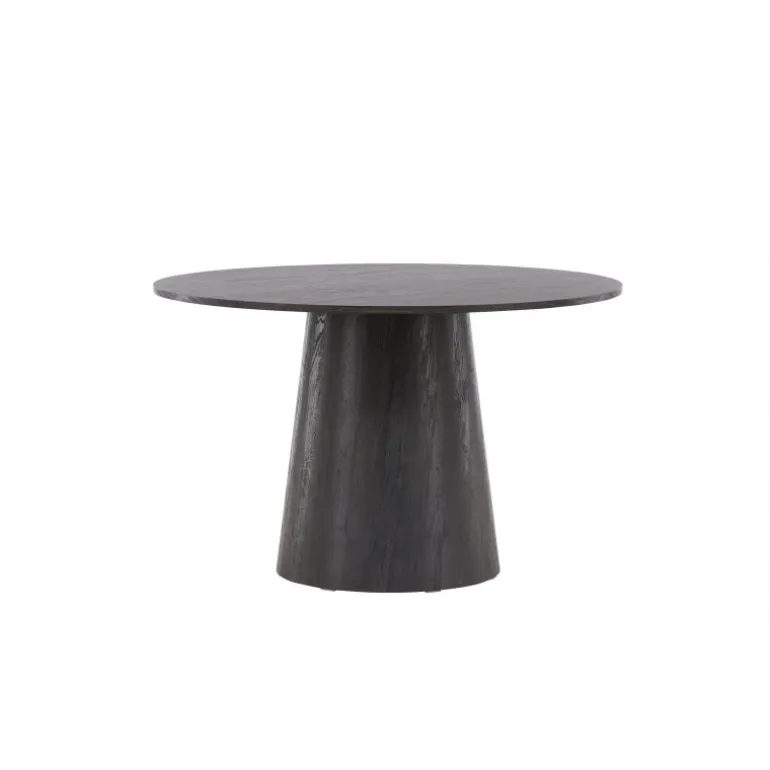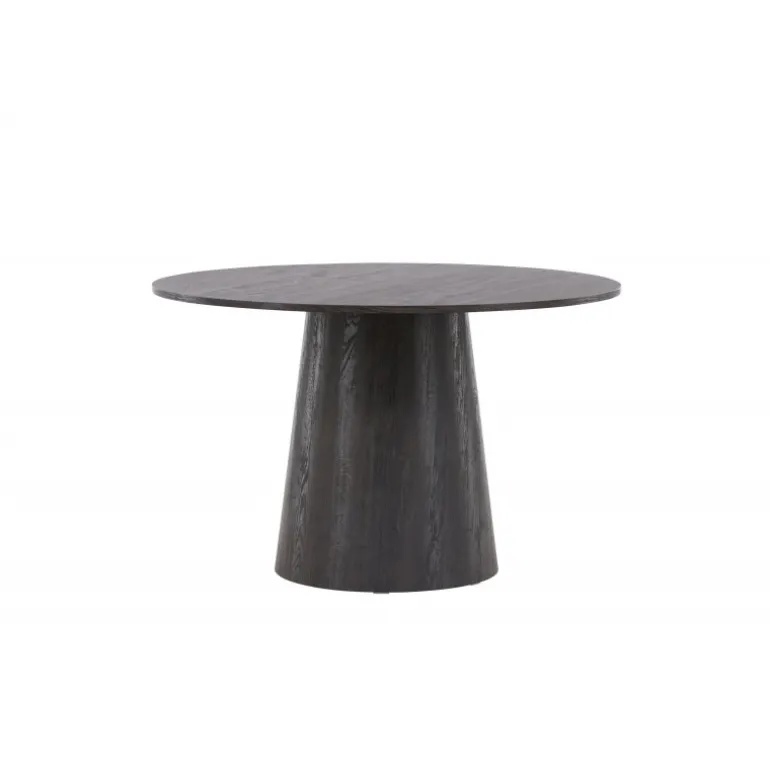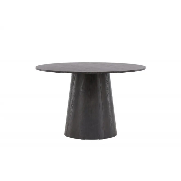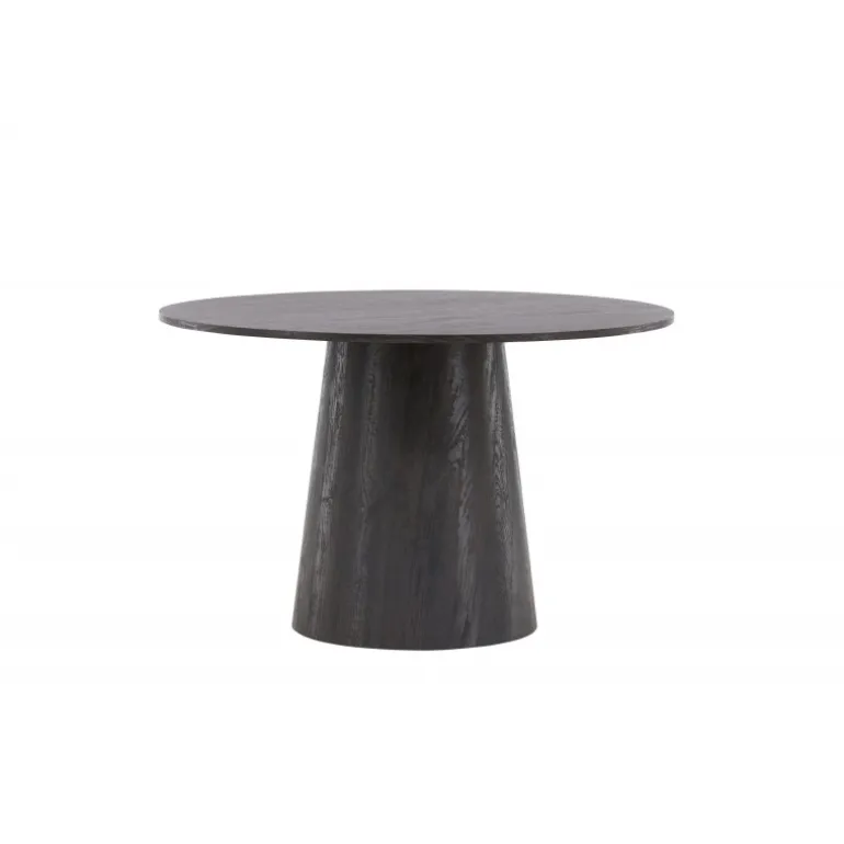 Spisebordet LANZO imponerer med sit skandinaviske design og smagfulde udseende! Rundt spisebordet har et gennemgående design i sort MDF med en tynd, rund topplade og en snoet cylindrisk ramme, der er centreret under midten af bordet. Farven er tidløs og fremhæver materialets mønster, hvilket giver liv og bevægelse til bordet. Skab et stilfuldt blikfang i hjemmets hjerte – her ender ingen på kanten!