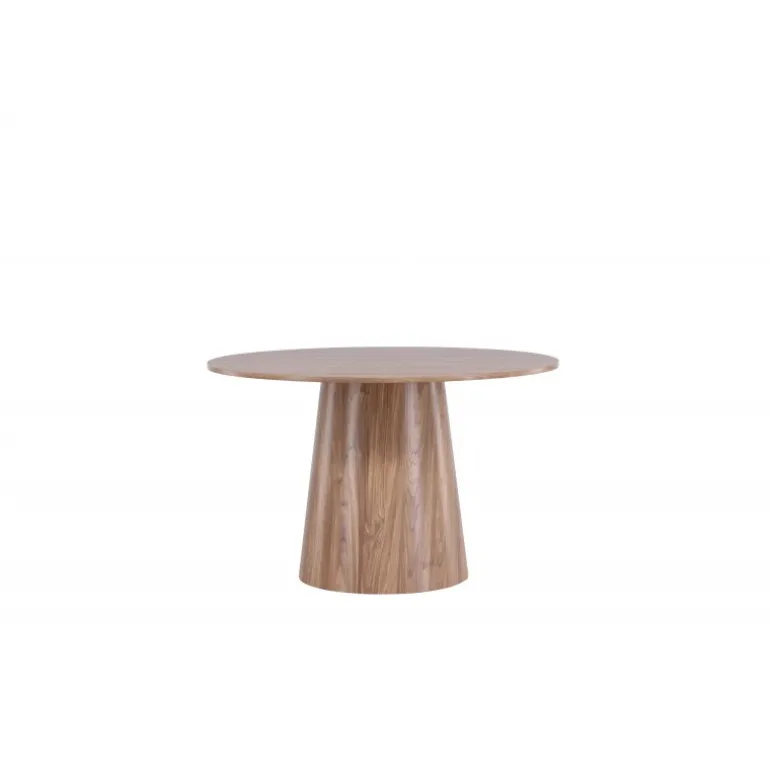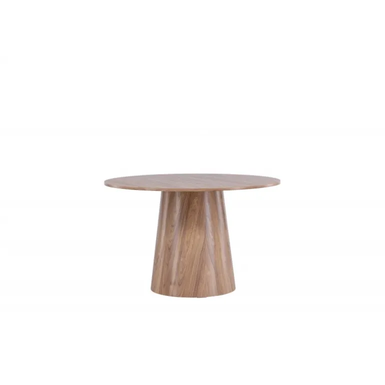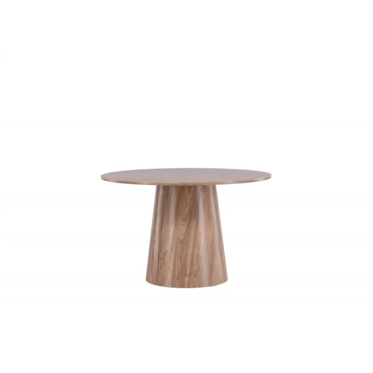 Spisebordet Lanzo imponerer med sit skandinaviske design og smagfulde udtryk! Rundt spisebordet har et ensartet design i MDF med en tynd, rund bordplade og en snoet cylindrisk ramme, der er centreret under bordets midte. Farven er jordnær, og det synlige mønster i materialet giver liv og bevægelse til bordet. Skab en stilfuld blikfanger i hjemmets hjerte – her ender ingen ude på kanten!