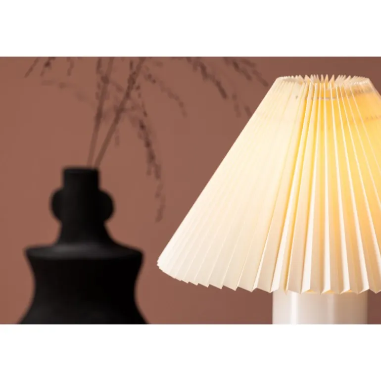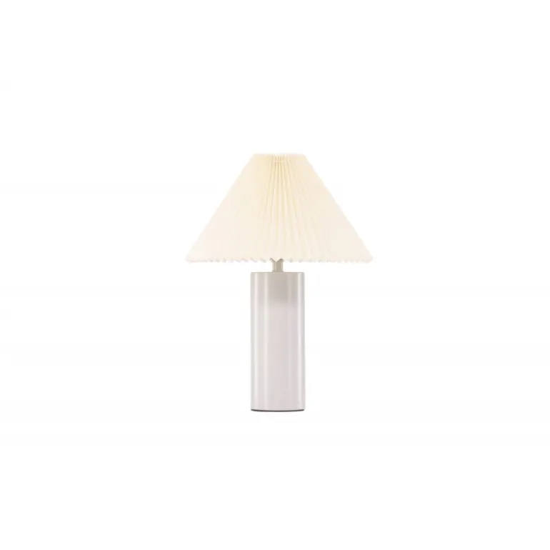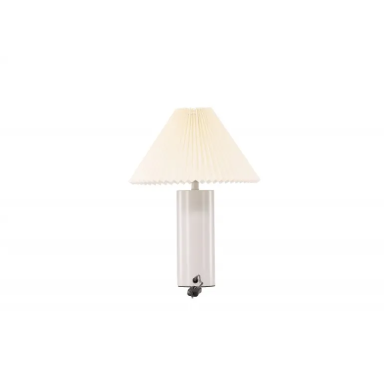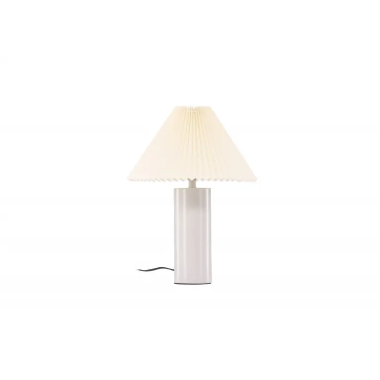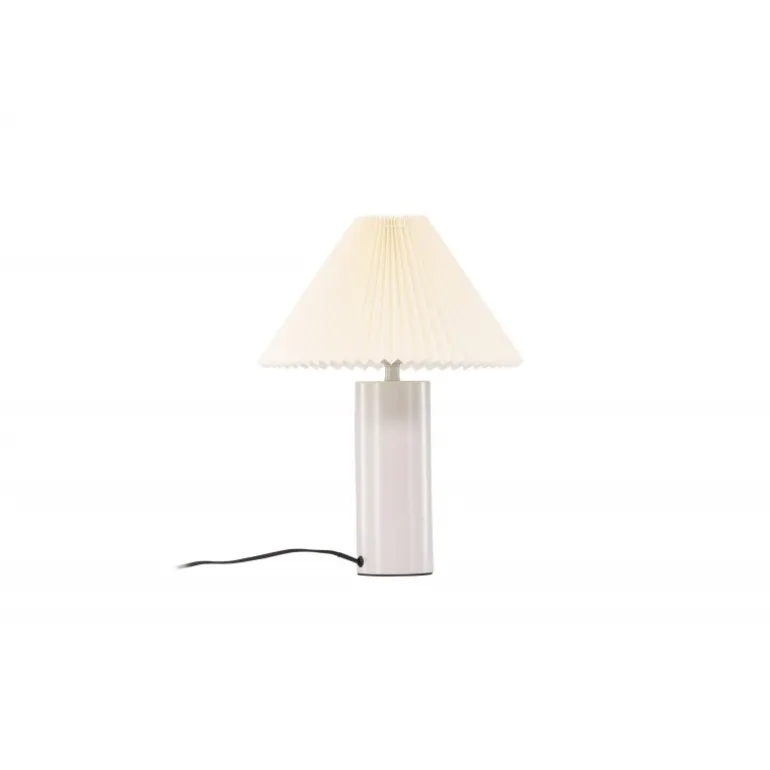 Largin er en stilfuld og moderne lampe, der passer perfekt på natbordet eller sidebordet. Den trendy lampeskærm i gråt stof med et foldet mønster kombineret med den cylinderformede lampefod i gråt jern gør denne lampe både tidløs og elegant! Med Largin får du et hyggeligt og behageligt lys samt en trendy interiørdetalje, der holder over tid.