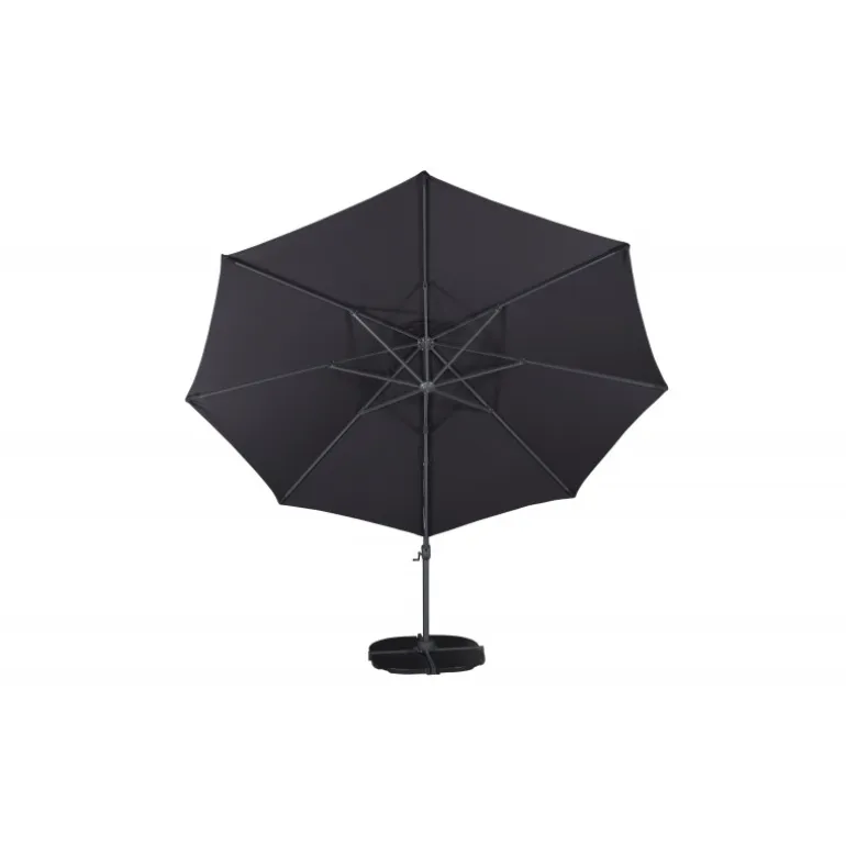 Leeds Parasol er en stor og robust parasol i sort, der kan rotere omkring sin egen akse. Den er justerbar i forskellige vinkler og giver god beskyttelse mod solen. Parasolens stof er nemt at holde rent, hvilket gør den praktisk og holdbar til udendørs brug.