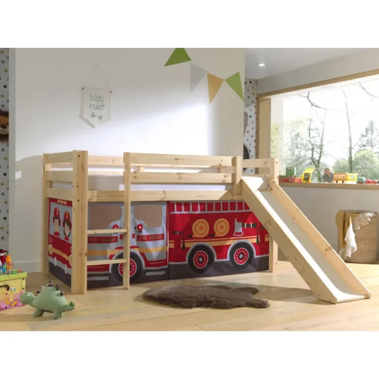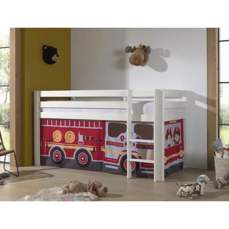 Legeforhæng til mellemhøj seng – Brandbil, rød, 100 % bomuld