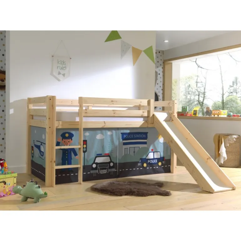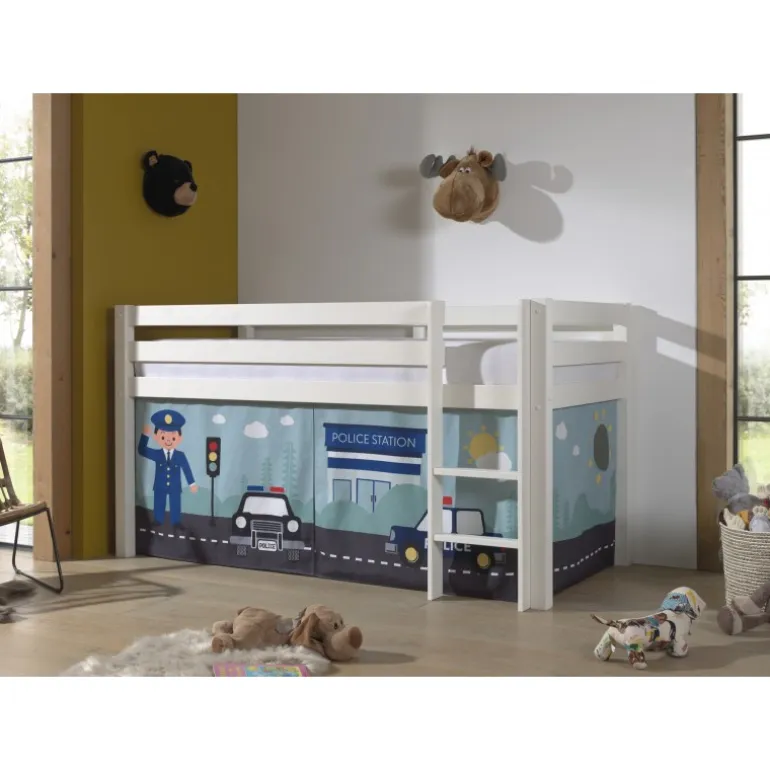 Legetæppe-forhæng til mellemhøj seng – Politi, blå