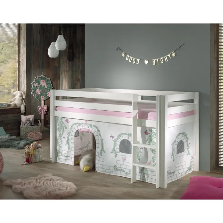 Legetæppe gardin til halvhøj seng – Birdy, hvid/lyserød