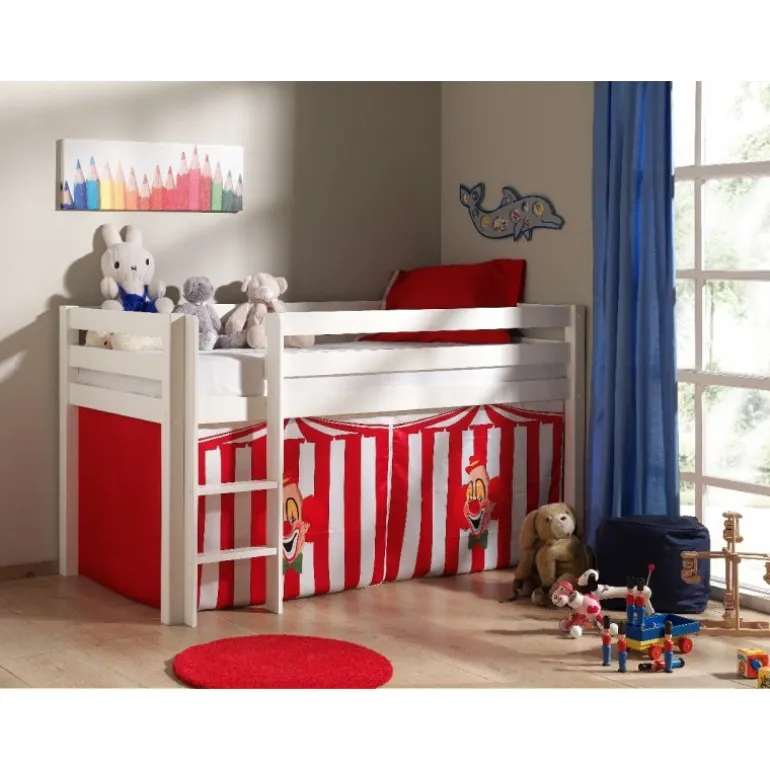 Legetæppe gardinsæt til halvhøj seng – Rød klovne-tema