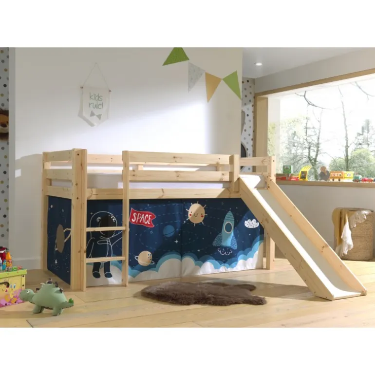 Legetæppeforhæng til halvhøj seng – Space Shuttle, blå