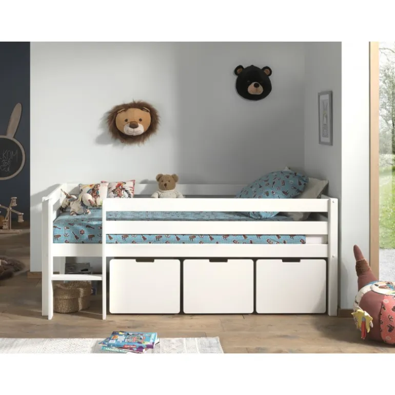 Legetøjskasse sæt til mellemhøj seng – Pino, hvid (3 skuffer)
