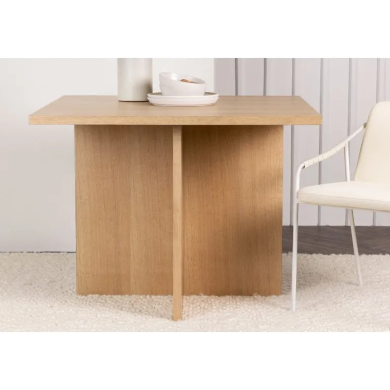 LEO spisebordet er den perfekte kombination af klassisk design og moderne look! Fremstillet i MDF med egetræsfarvet finish, firkantet bordplade og krydsede træplader som ramme. Den kompakte størrelse gør det ideelt selv i mindre køkkener. Nyd skønne måltider omkring dit holdbare og stilfulde spisebord!