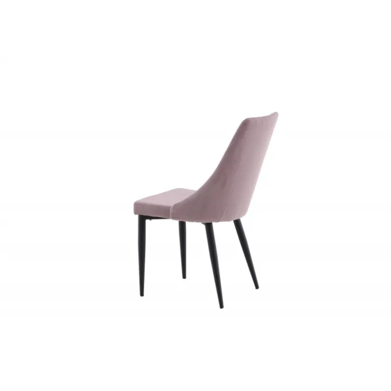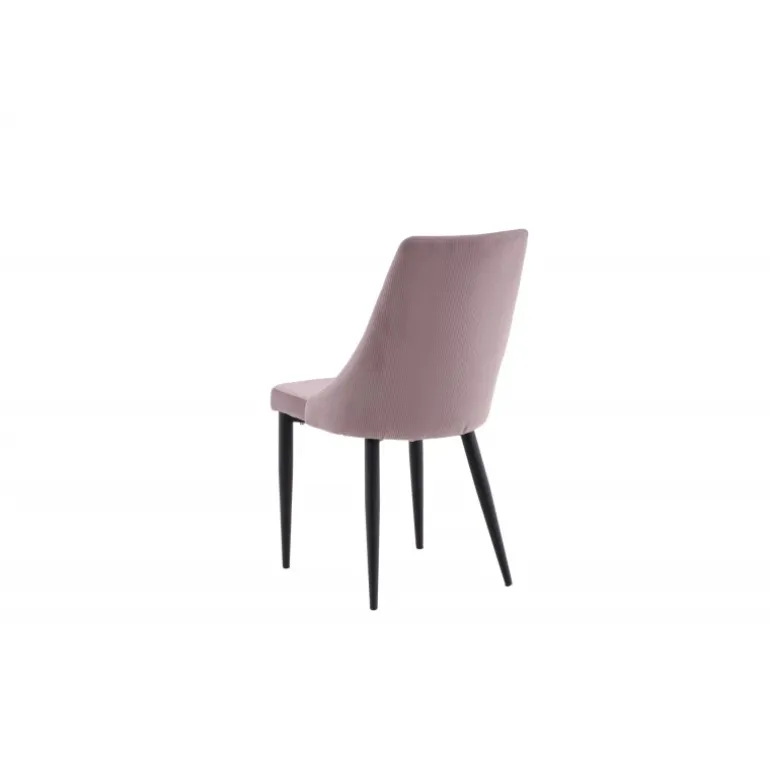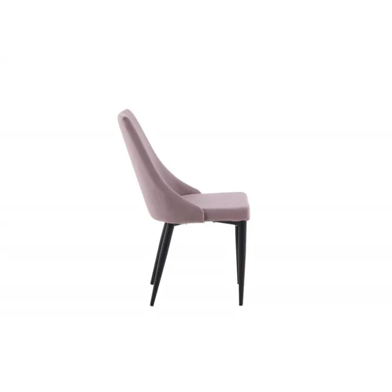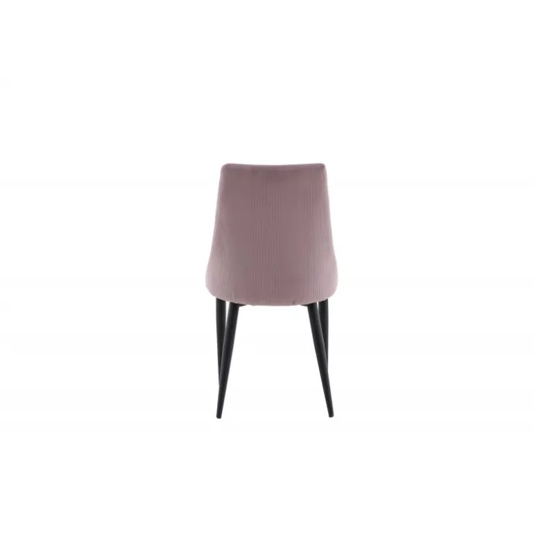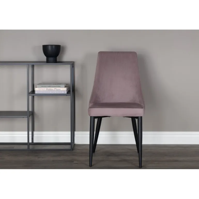 En trendy spisestol i blødt gammelrosa fløjlstof vil helt sikkert skabe en hyggelig atmosfære i din stue! Leone spisestolen har et fuldt polstret design, ben i sort pulverlakeret metal og en høj ryg og sæde med blød polstring for ekstra komfort. Nogle samlinger kræves. Her sidder du behageligt og nyder i timevis! Plejeinstruktioner: Brug tekstilspray til at imprægnere stoffet, før du bruger det, hvilket også vil gøre det nemmere at fjerne eventuelle snavs og pletter i fremtiden. Fjern pletter straks, gnid ikke, men prøv forsigtigt at suge op med en klud.