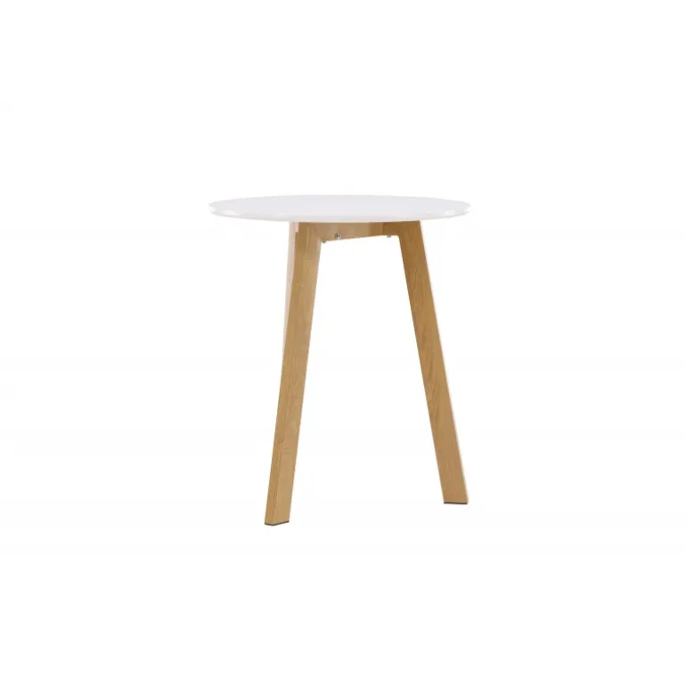 Et indbydende spisebord i tidløs design, der holder over tid! Leonora bordet har en rund bordplade i hvid MDF og et stel i lækker egelook. Det enkle, men iøjnefaldende design af bordet giver dit stue- eller køkkenområde det lille ekstra. Match med et par komfortable spisebordsstole, og du får en Spisebordssæt, du vil længes efter!