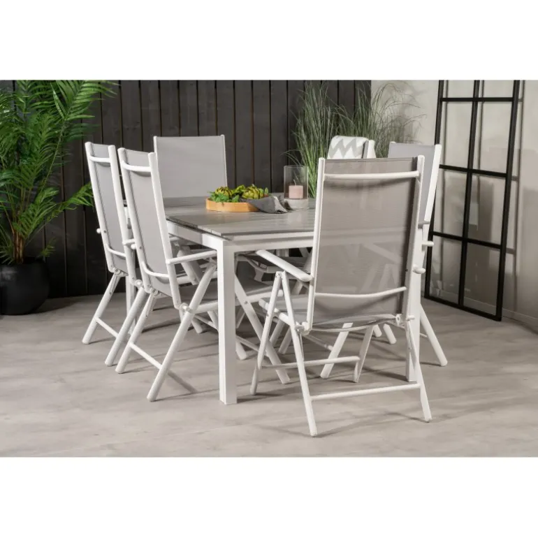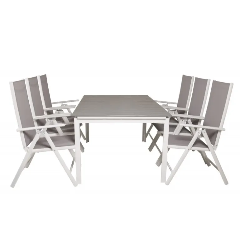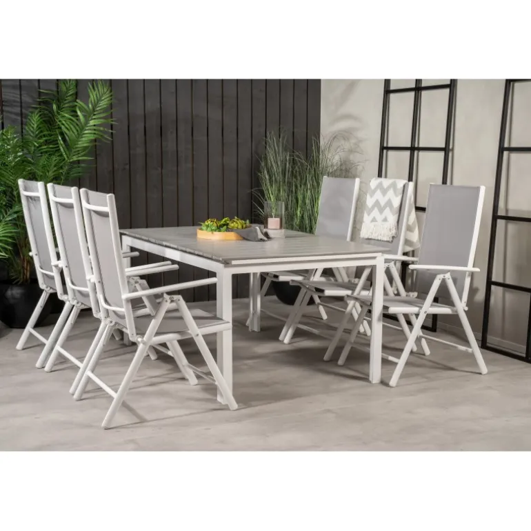Vores moderne og foldbare Break-stole i kombination med det udtrækkelige Levels spisebord passer perfekt på balkonen eller i udendørsarealet. Indret dig og gør klar til udendørssæsonen – på den bedste måde! Levels Rektangulære Loungesæt – Havemøbelsæt er ideelt til både små og store sammenkomster, og dets robuste materialer sikrer holdbarhed og lang levetid. Med aintwood bordplade og stel af aluminium er dette sæt ikke kun stilfuldt, men også praktisk og let at vedligeholde.
