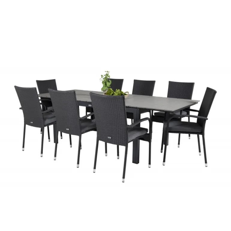 Med sin sorte og enkle fremtoning er kombinationen af spisebordet Levels og spisestolene Anna en favorit hos mange. Bordet er rummeligt – perfekt til at samle hele familien til sommerspisning!