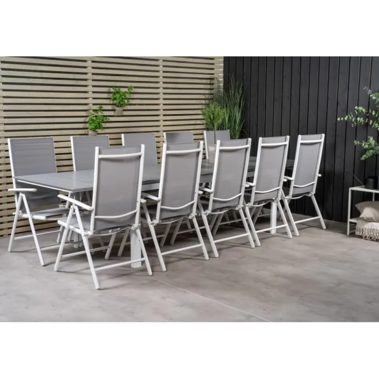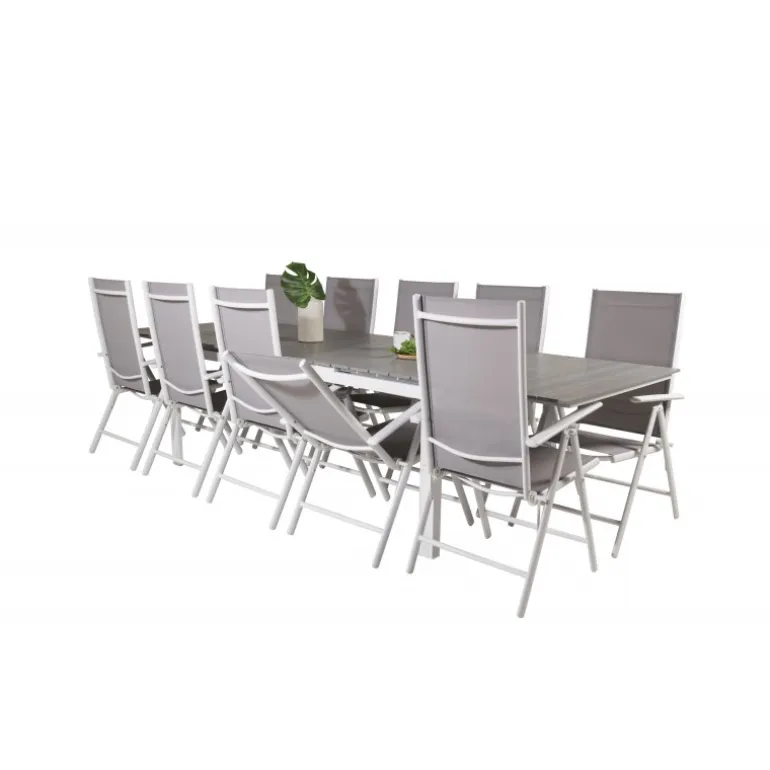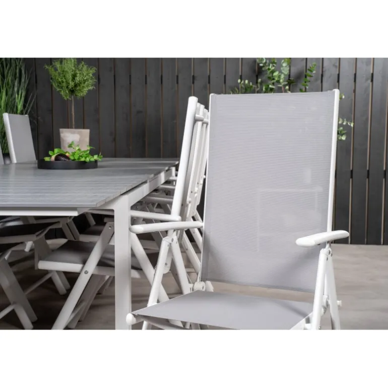 Moderne og hyggelig – det er følelsen, du får på terrassen eller altanen, når du vælger dette Loungesæt – Havemøbelsæt. Her kombineres vores udtrækkelige spisebord med foldestole fra Break-serien. Sid længe og nyd god mad og godt selskab!
