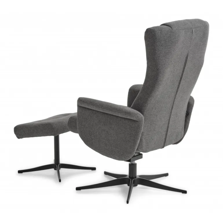 Liam lænestolen inklusiv skammel kombinerer luksus og komfort i et stilfuldt design. Denne lænestol er betrukket med holdbar polyesterstof i farven Anthracite og har en moderne Austin-finish.