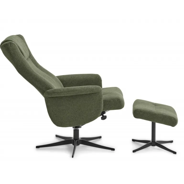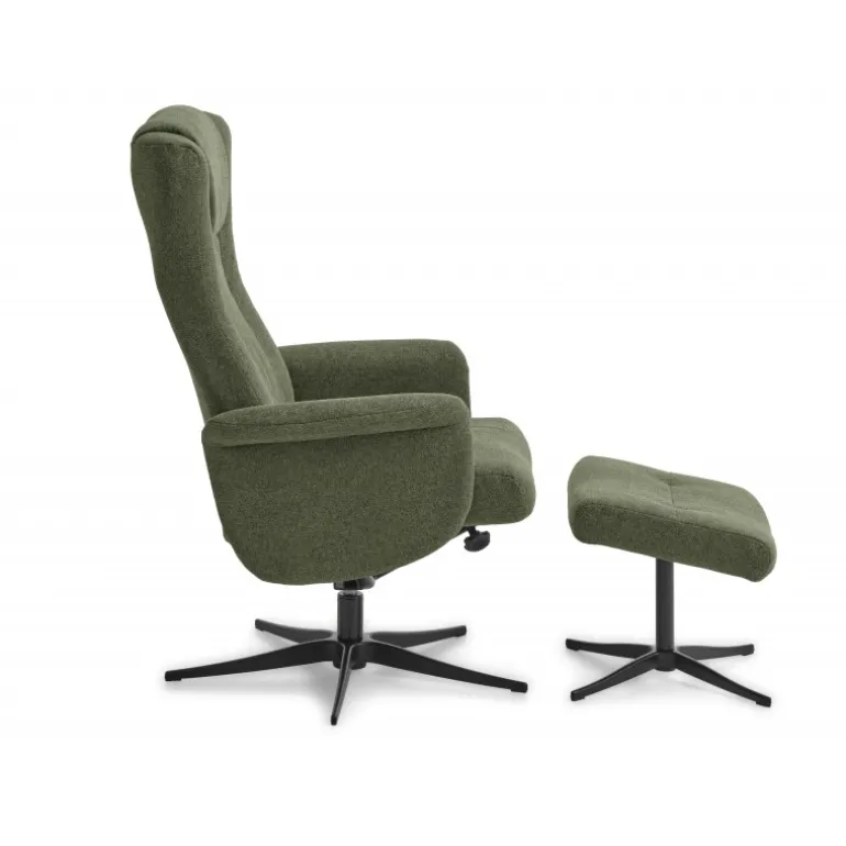 Liam lænestolen inklusiv skammel kombinerer luksus og komfort i et stilfuldt design. Denne lænestol er betrukket med holdbar polyesterstof i farven Winther Moss og har en moderne Austin-finish.