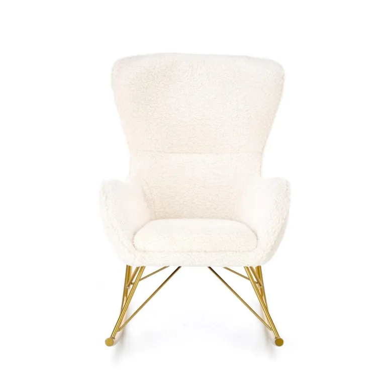 - Elegant Design: Cremefarvet bouclé-stof med gyldne ben i kromstål.