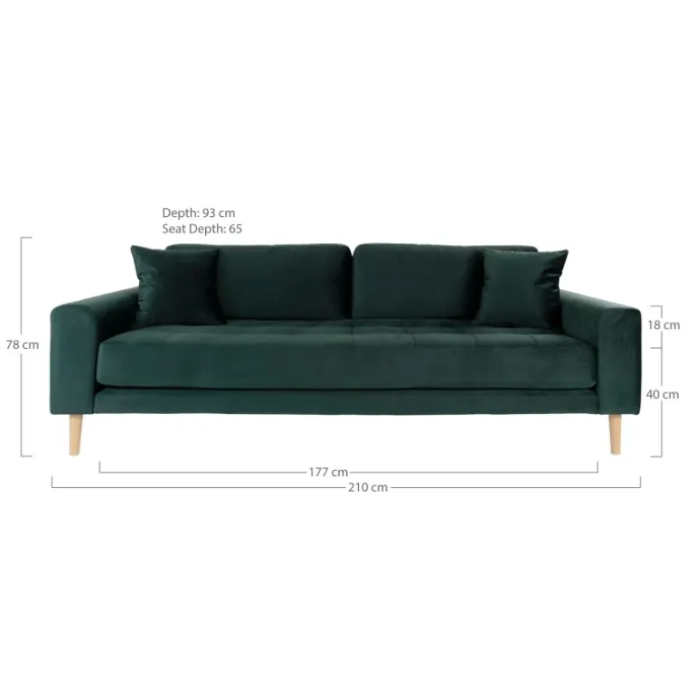 Lido 3 Personers Sofa – Sofa i mørkegrønt velour