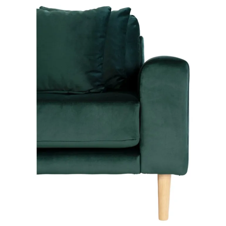 Sofaen er polstret i ryggen og sædet for ekstra god siddekomfort. Den er beklædt med slidstærkt velour stof, som både tilføjer elegance og varme til din indretning. De stilfulde ben, lavet i bøge træ, bidrager til det moderne udseende af sofaen.