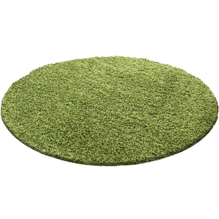 Life Rund Shaggy tæppe Ensfarvet – Grøn