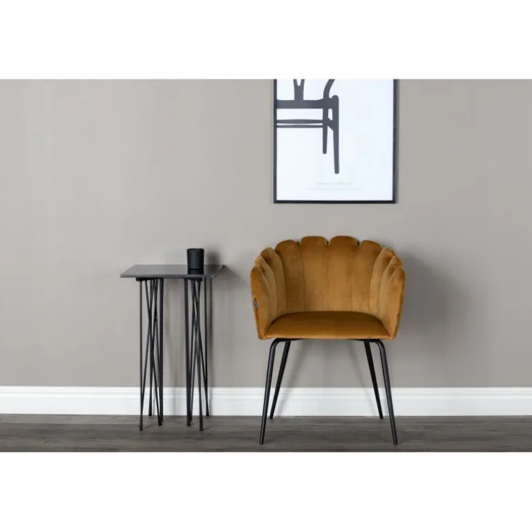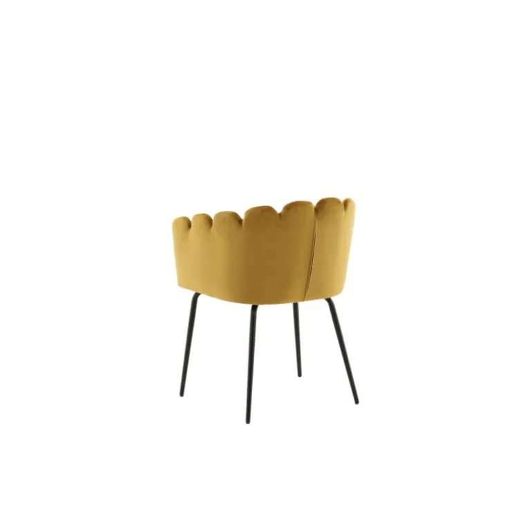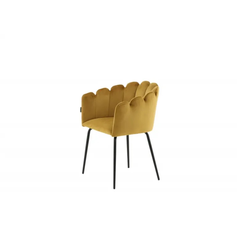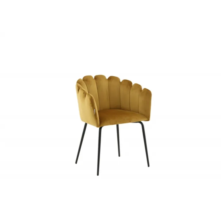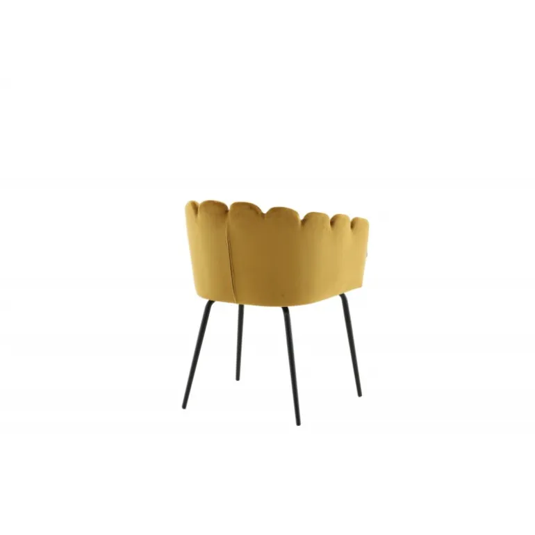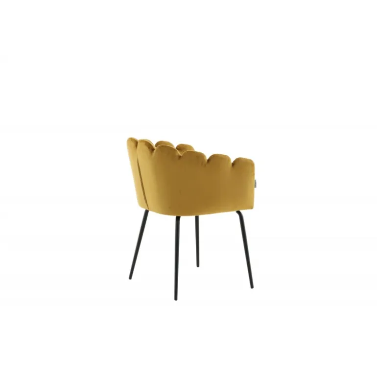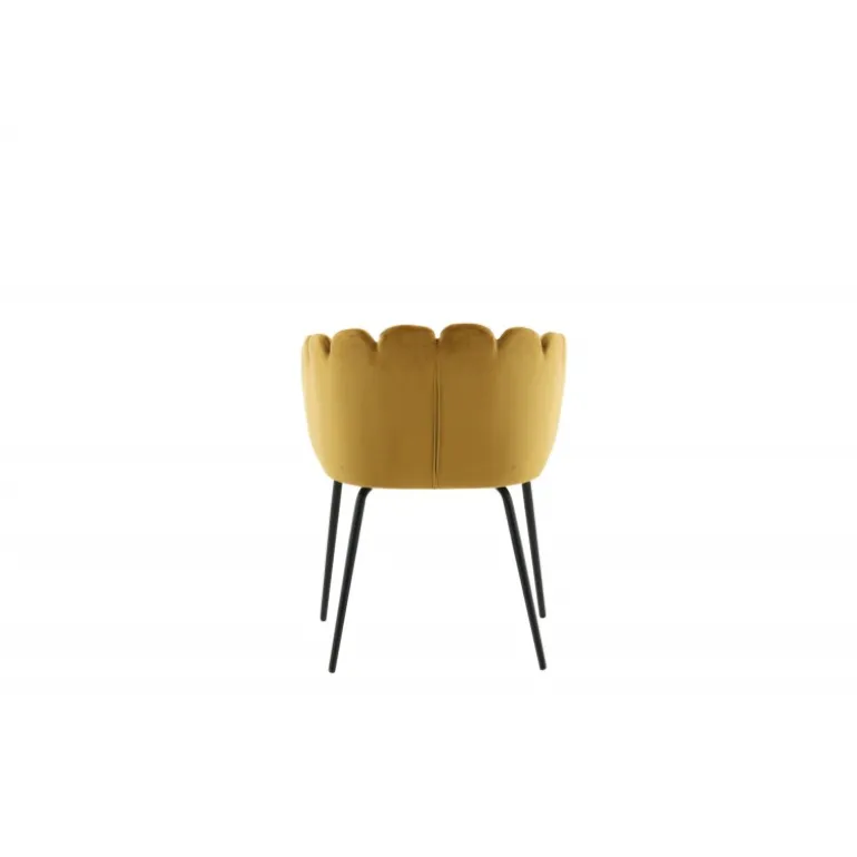 En moderne farveklat kan let løfte indretningen til næste niveau! Limhamn spisebordsstol er en moderne favorit i mange hjem. Den har et indbydende design med en dekorativ ryglæn formet som en muslingeskal med dekorative sømme og et afrundet sæde i gul fløjlsstof. Benene er i sort pulverlakeret metal. Skab en hyggelig focal point i hjertet af hjemmet! Nogle montering er påkrævet. Plejeinstruktioner: Brug stofspray til at imprægnere stoffet før brug, hvilket også gør det lettere at fjerne snavs og pletter i fremtiden. Fjern pletter straks, gnid ikke, men prøv forsigtigt at suge op med en klud.