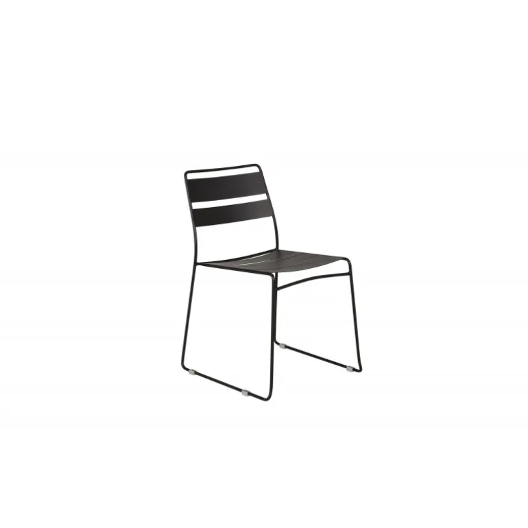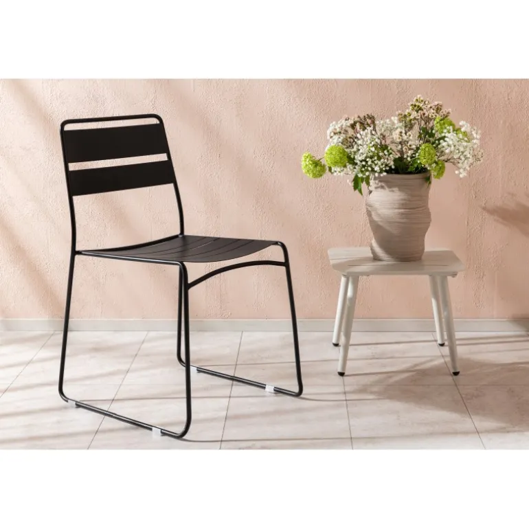 Lina er en stilfuld og enkel sort stålstol, der passer perfekt både i udendørsområder og på altanen. Det smalle design gør stolene nemme at justere og placere. Match med et lækkert spisebord og nyd måltider udendørs denne sommer! Hynde kan købes separat. Stolen er stabelbar. Plejeråd: Stål er et materiale, som afviser snavs og væsker, men vær opmærksom på, at vand kan forårsage pletter og rust. Sørg derfor for at tørre overfladen af med en blød, fugtig klud og sæbevand for at undgå rustdannelse.