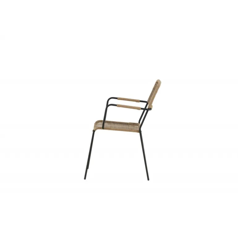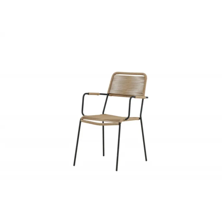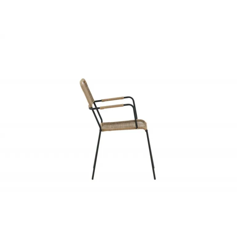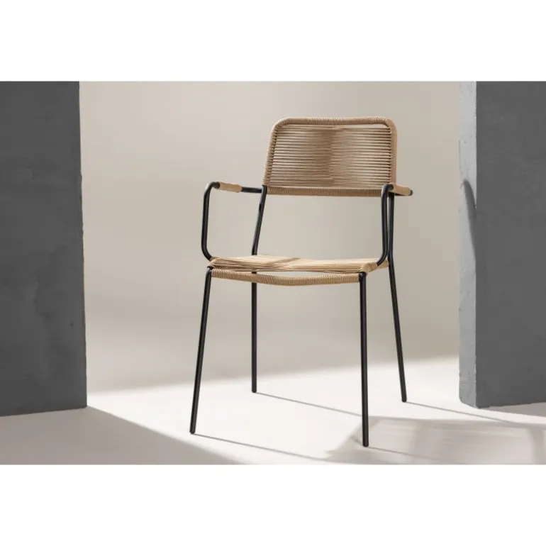 Indret terrassen med moderne jordfarver og elegante Havestole fra Lindos-serien. Armlænene er lavet af sort aluminiumskonstruktion, og sædet er i beige/brun vævet reb. Lindos er en ægte designikon, der passer både i klassiske og moderne miljøer. Inviter til mange sociale øjeblikke fremover! Stolen er stabelbar. Plejeråd: Vores reb er kvalitetsspundet polyester, som er let at rengøre. Møblerne er behandlet til at modstå 500-2000 timer. Vi anbefaler sæbe og vand til rengøring. Lad lufttørre. Til de områder, der er sværere at nå, kan en lille børste bruges forsigtigt. Brug aldrig højtryksrenser eller stærke kemikalier til at rengøre rebet.