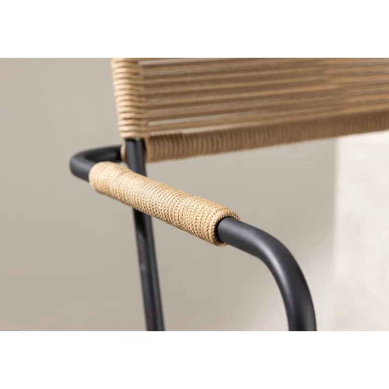- Sort aluminiumskonstruktion og beige/brun vævet reb