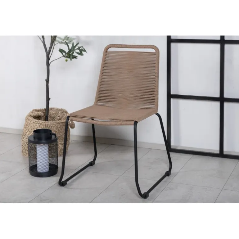 En stilfuld favorit! Den smukke naturlige farve på vores Lindos Havestol skaber en harmonisk følelse i alle udendørs områder. Fremstillet af holdbare materialer og reb i en jordnær beige nuance. Nyd måltider udendørs denne sommer! Stolen er stabelbar. Plejeråd: Vores reb er kvalitets-spundet polyesterreb, der er let at rengøre. Møblerne er behandlet til at modstå 500-2000 timer. Vi anbefaler sæbe og vand til rengøring. Lad lufttørre. For de områder, der er sværere at nå, kan en lille børste bruges forsigtigt. Brug aldrig højtryksrenser eller stærke kemikalier til at rengøre rebet.