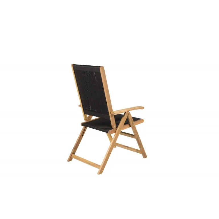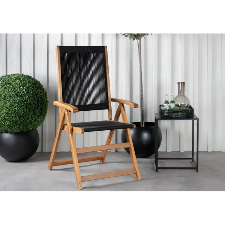 Sort møder klassisk træ – en perfekt kombination! Little John er en spisestol, der har alt rigtigt – komfortabel, stilfuld og praktisk. En justerbar stol med foldbar ryglæn for optimal komfort. Sæt dig tilbage denne sommer og nyd hyggelige måltider. Vedligeholdelsesråd: Vores reb er lavet af kvalitets-polyesterreb, der er let at rengøre. Møblerne er behandlet til at modstå 500-2000 timer. Vi anbefaler sæbe og vand til rengøring. Lad møblerne lufttørre. Til de områder, der er sværere at nå, kan en lille børste bruges forsigtigt. Brug aldrig højtryksrenser eller stærke kemikalier til at rengøre rebet.