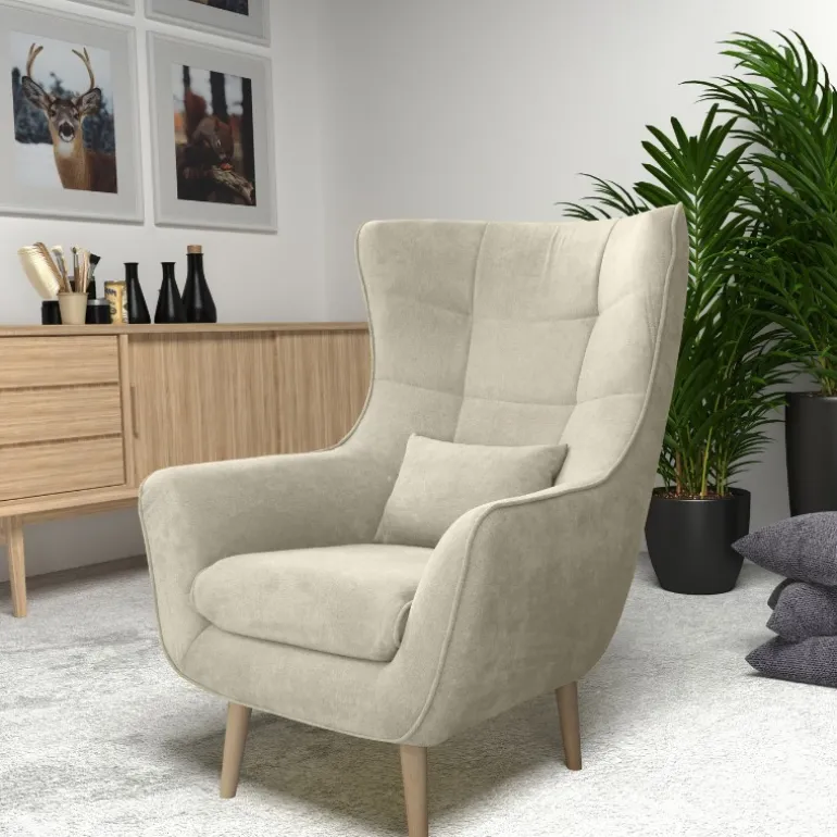 Liva Lounge kan bestilles i valgfri farve og materiale, og du kan tilføje en matchende fodskammel for ekstra komfort. Du vælger selv stoffet, farven og farven på træbenene, så stolen bliver præcis, som du ønsker den.