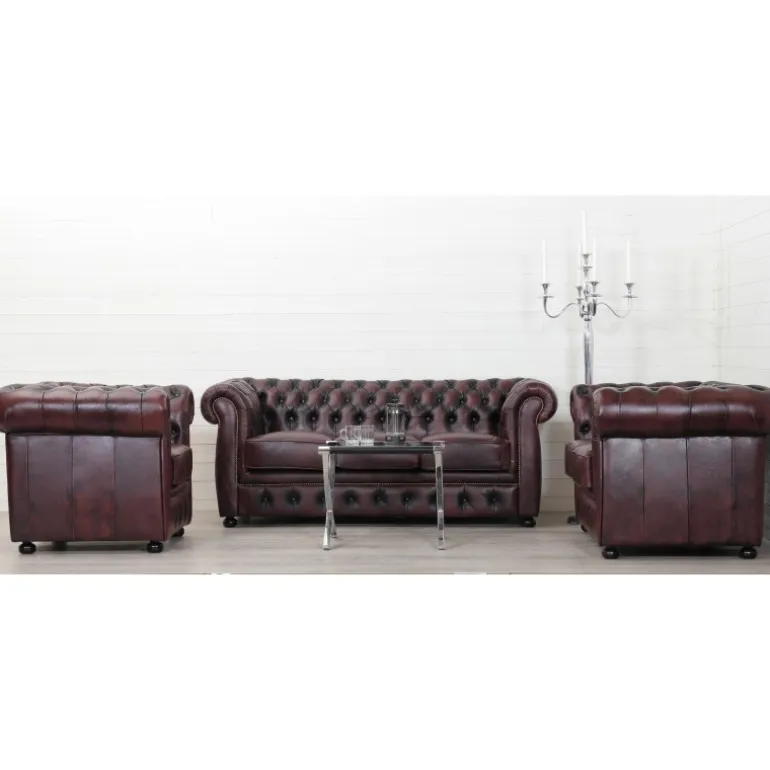 Liverpool 2-Personers Chesterfield Sofa – Okseblod Læder