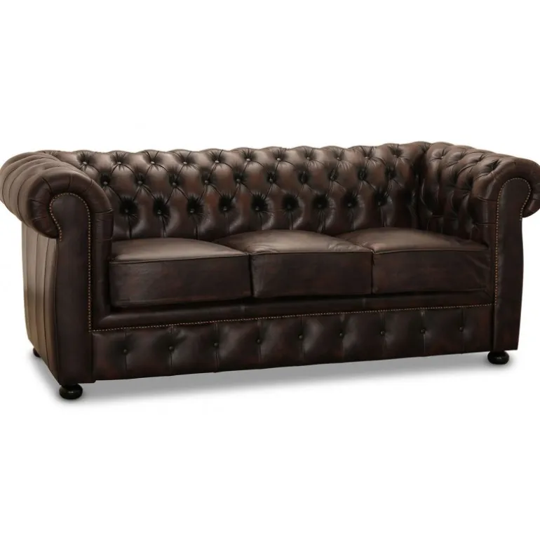Liverpool 3-Personers Chesterfield Sofa – Brun Læder