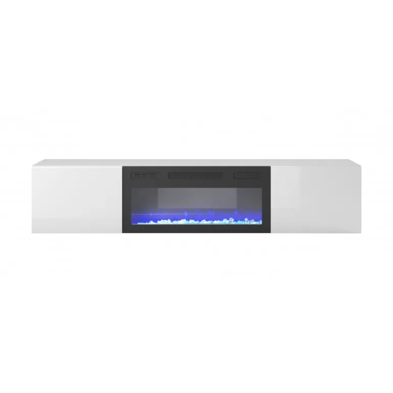 Oplev stil og funktionalitet med LIVO RTV 180 TV bord med pejs. Dette elegante TV bord, der måler 180/40/30 cm, kombinerer moderne design med praktiske funktioner. Konstrueret med en mat krop og en højglans MDF-front, tilføjer det et sofistikeret touch til dit hjem. Med en skub-klik system og gaslifte, får du nem adgang til opbevaringsrummet. Den indbyggede pejs giver en hyggelig atmosfære, perfekt til afslappende aftener. Farven hvid sikrer, at den passer ind i enhver indretning.