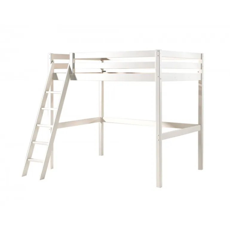 Loftseng 140×200 – Pino høj seng i hvid fyrretræ