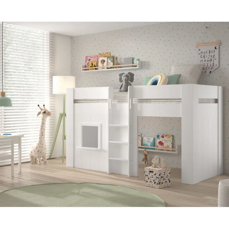 Loftseng til børn Reno halvhøj 90 x 200 cm – hvid