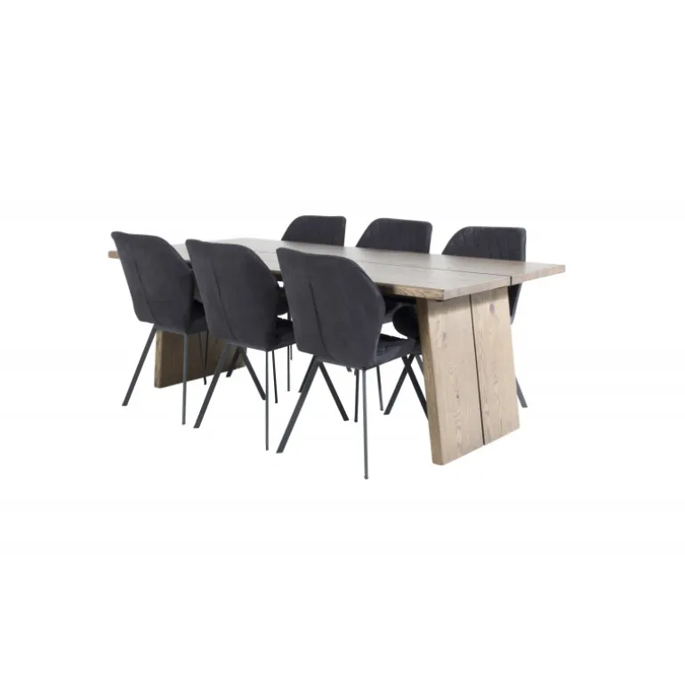 - Rustikt og stilfuldt design: Logger Rektangulær Spisebordssæt kombinerer en trendy træfinish med klassiske sorte stole.